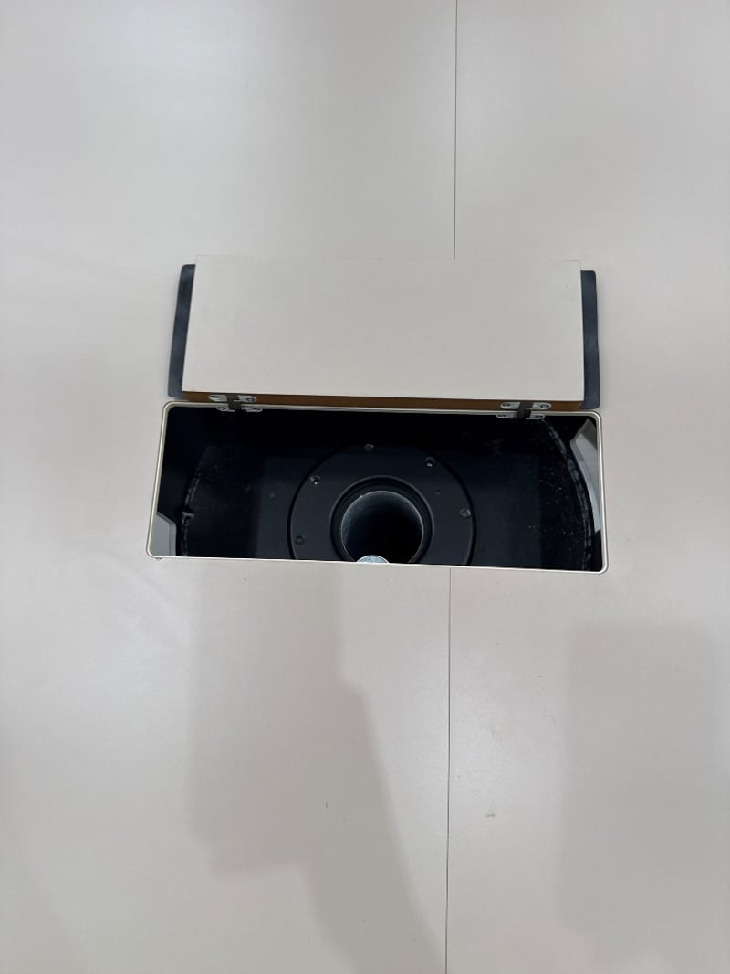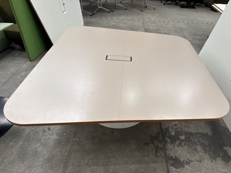 Table, Unknown Brand, Power point access, Colour Cream/ White. Approx Dimensions- 73h X 198w X 180d.