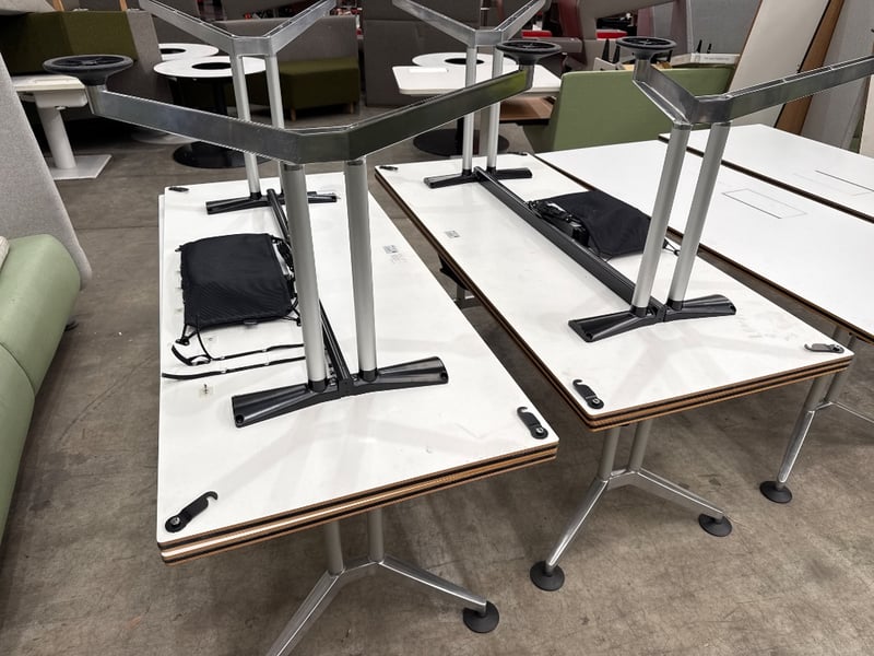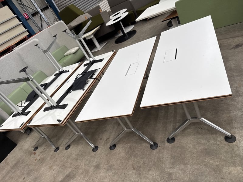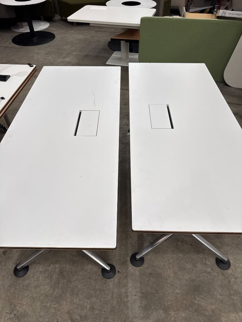 Desk, Wilkhahn, Logan 623, Laminex Parchament, Square edge, Colour White, Legs Grey.