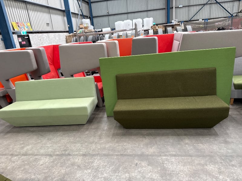Couch, Assorted Couches, Colours include different shades of green. Approx Dimensions- Couch 1- 82h X 173w X 70d. Couch 2- 120h X 230w X 70dQuantity- 2 couches, sold as lot.