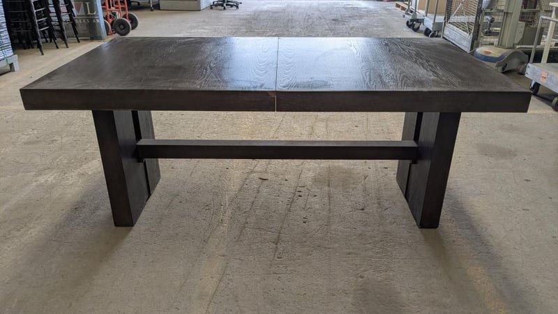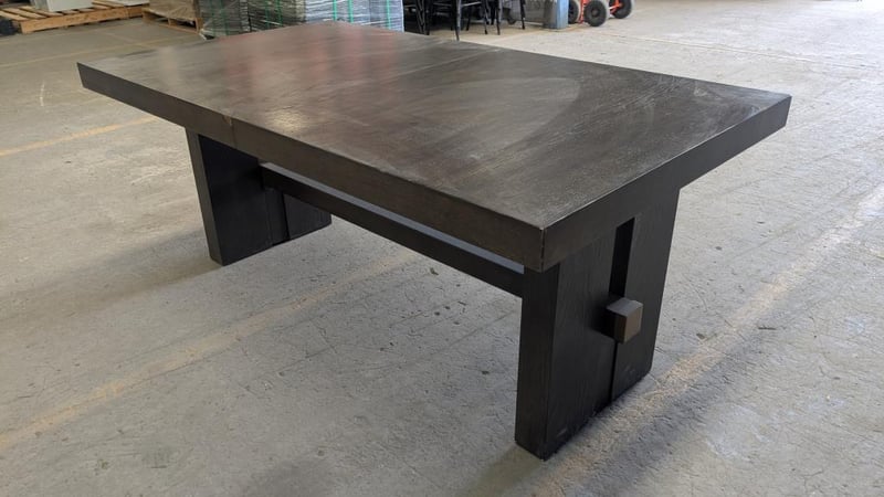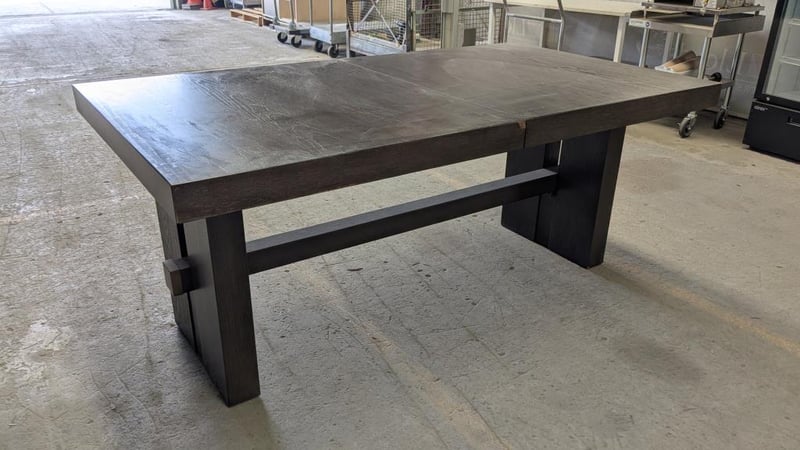 Dining Table, Brown, Timber Dimensions: (H)77cm x (W)183cm x (D)102cm Note, Signs of wear, missing extension inserts