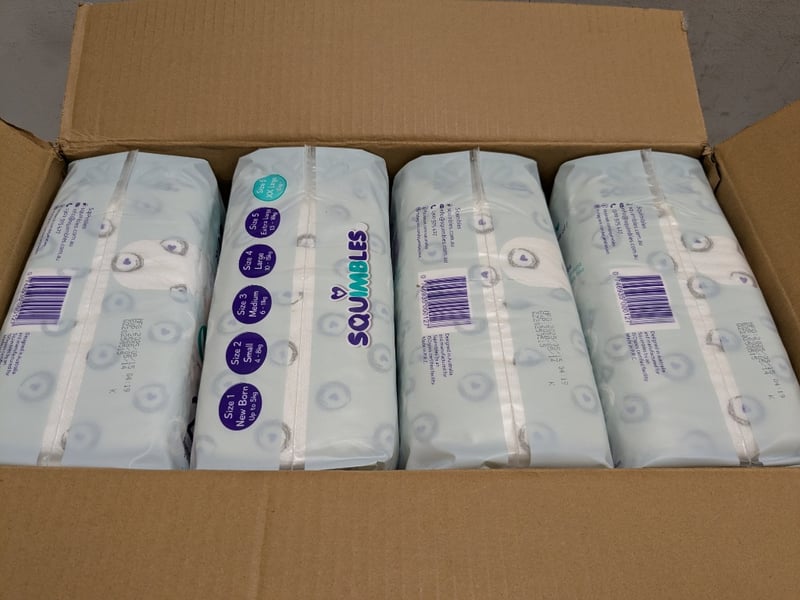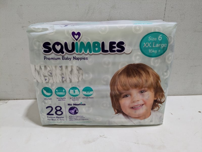 Box of Squimbles Premium Baby Nappies, Size 6 (XX Large, 16kg+) Quantity to lot Sold as a lot