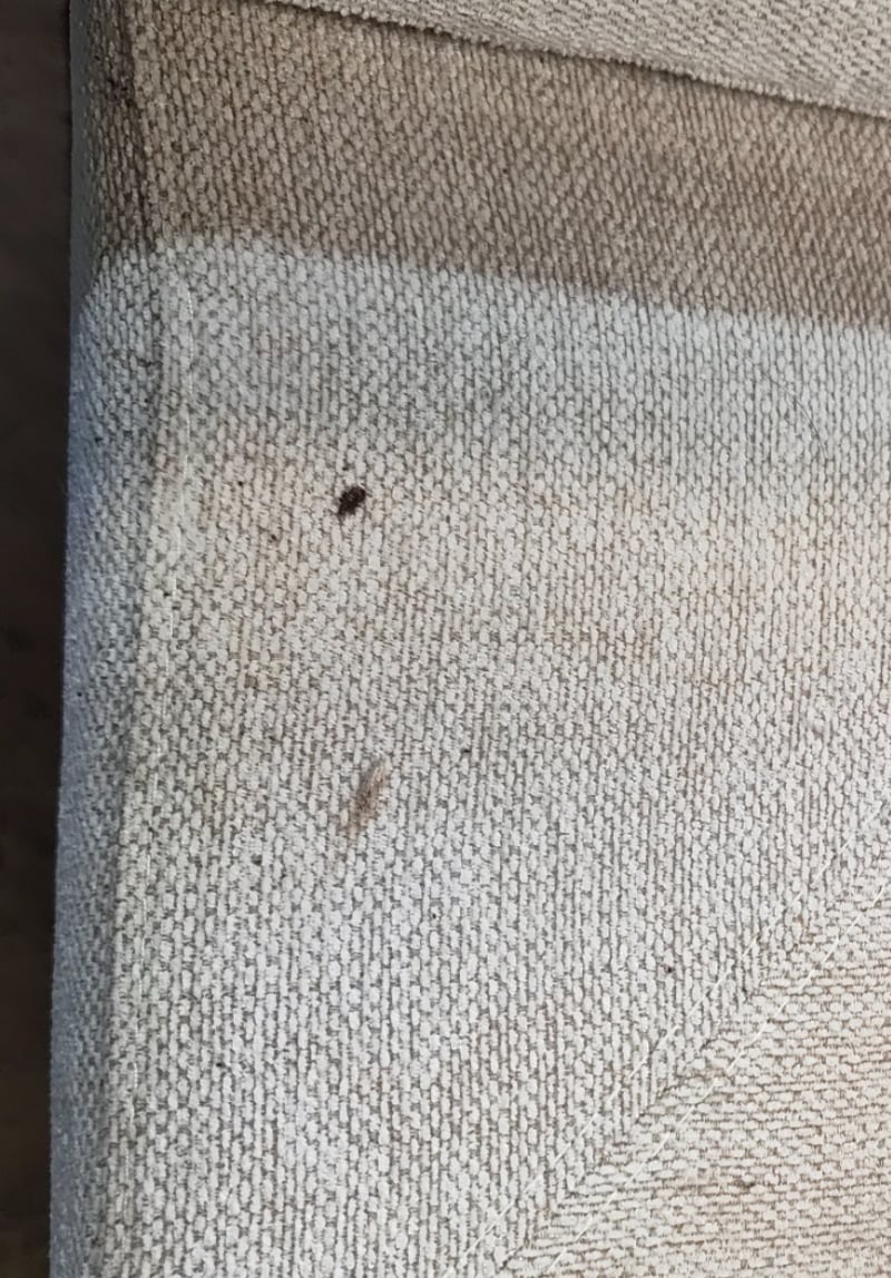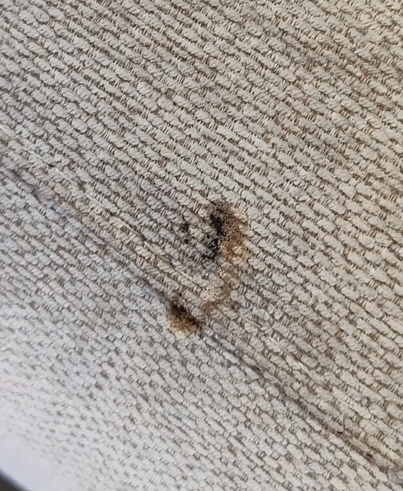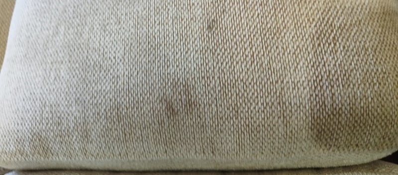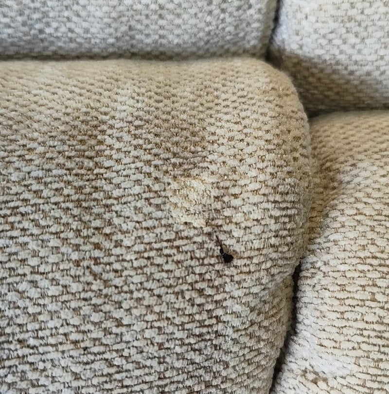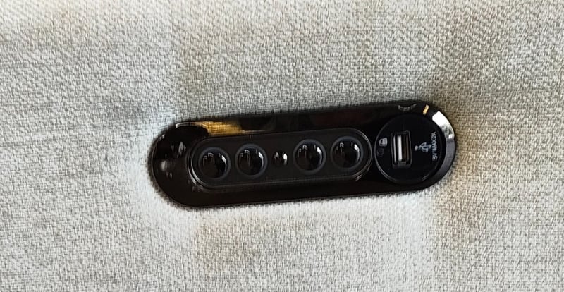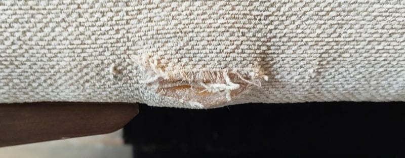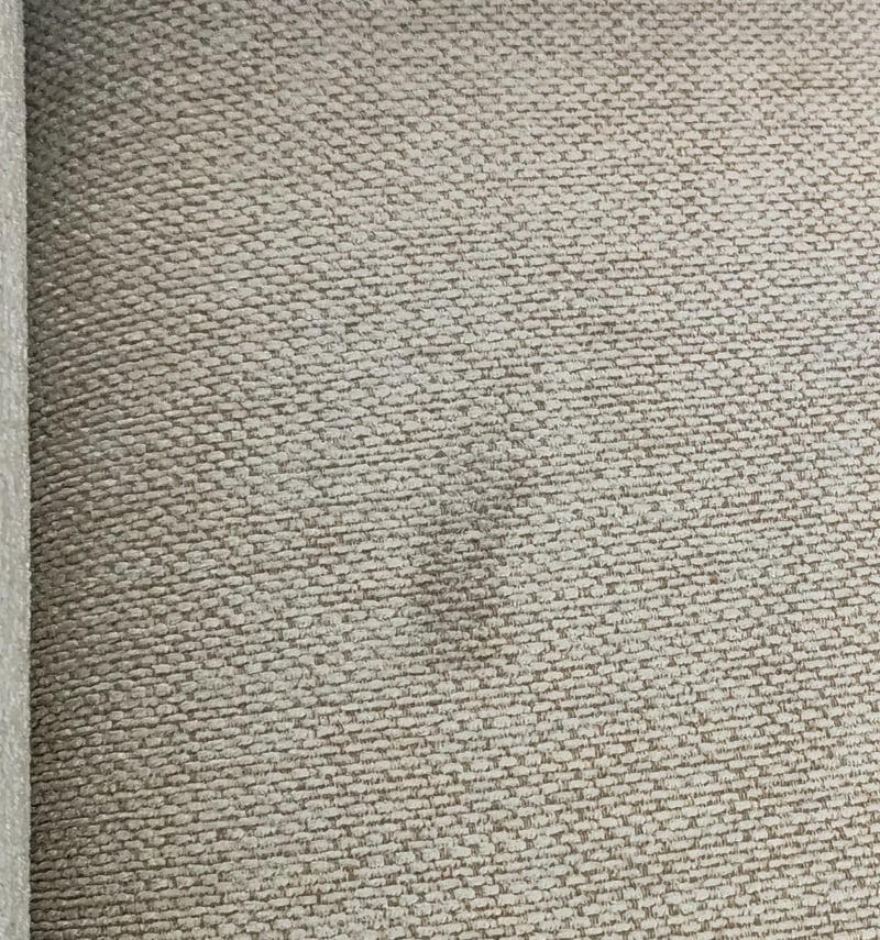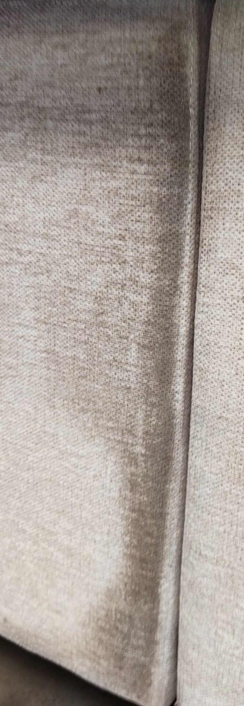5 seater electric reclining lounge. Light grey/cream fabric dimensions: 285cm x 285cm x 80cm Note: a tear in the fabric, inspection recommended, cleaning required