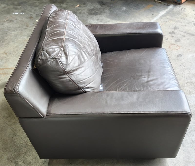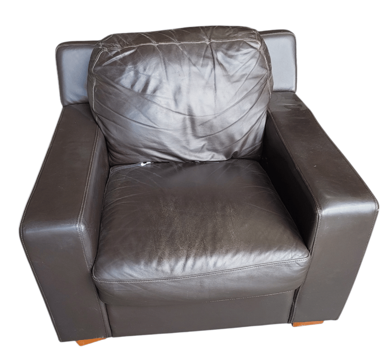 One seater leather couch, burgundy.