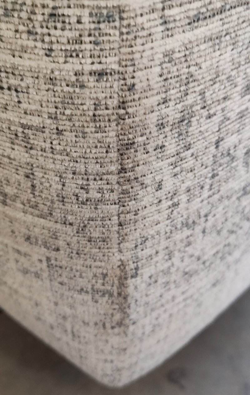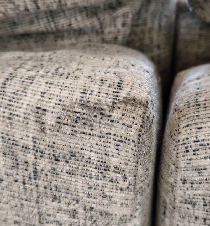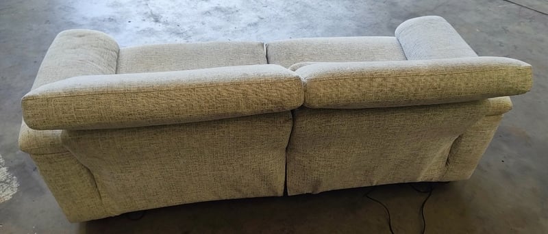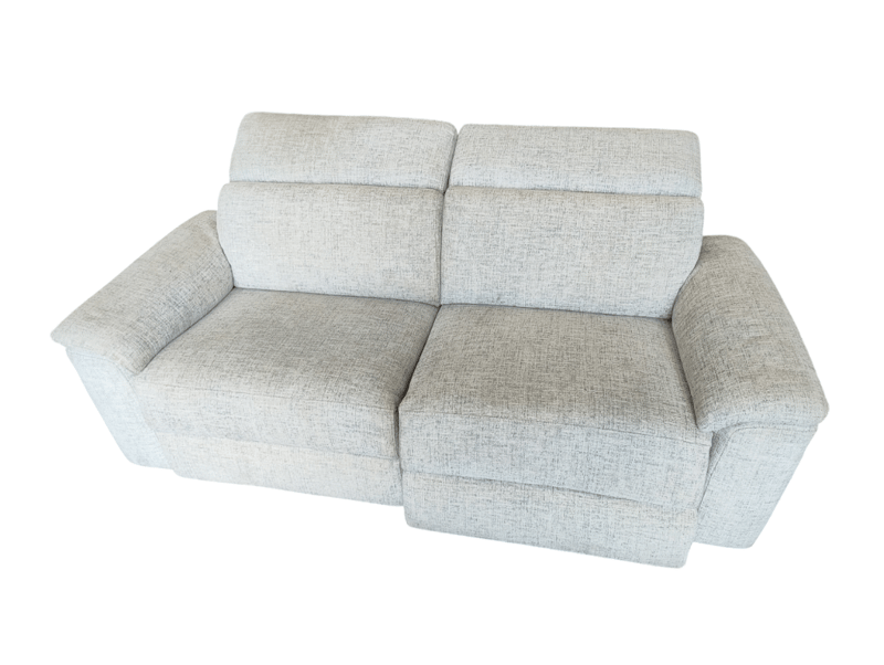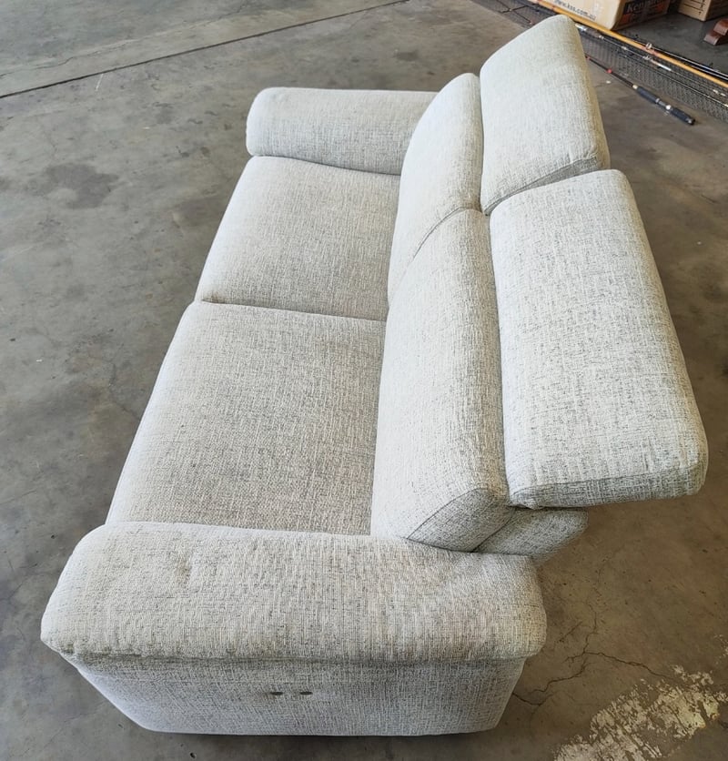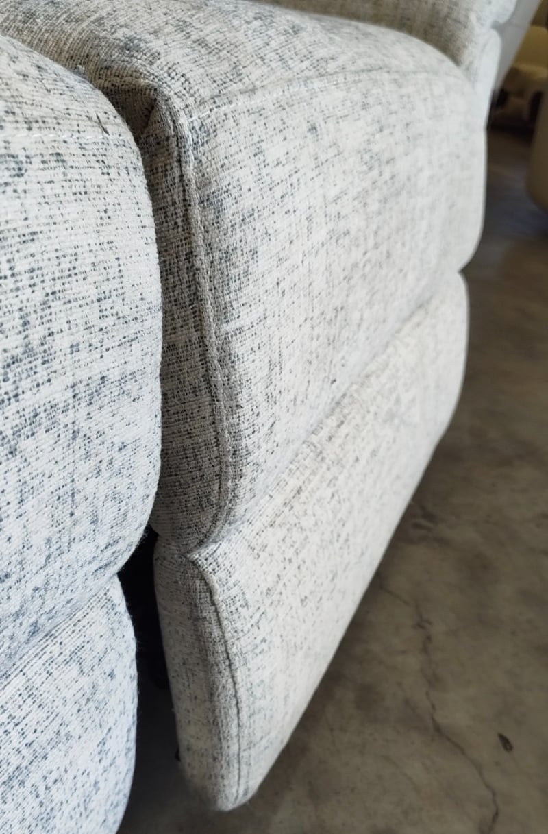 2 seater electric reclining lounge, light grey with blue speckled pattern fabric