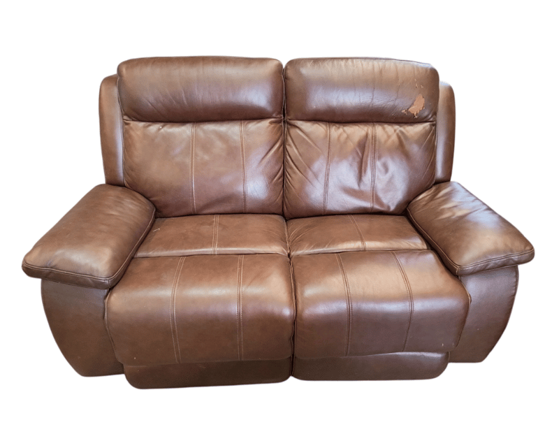 2 seater electric reclining lounge, burgundy leather USB portsdimensions: 108cm x 154cm x 106Note: ripped pillow inspection recommended, cleaning required