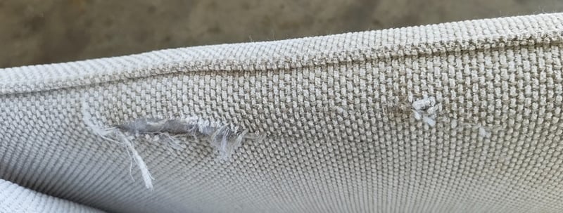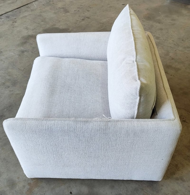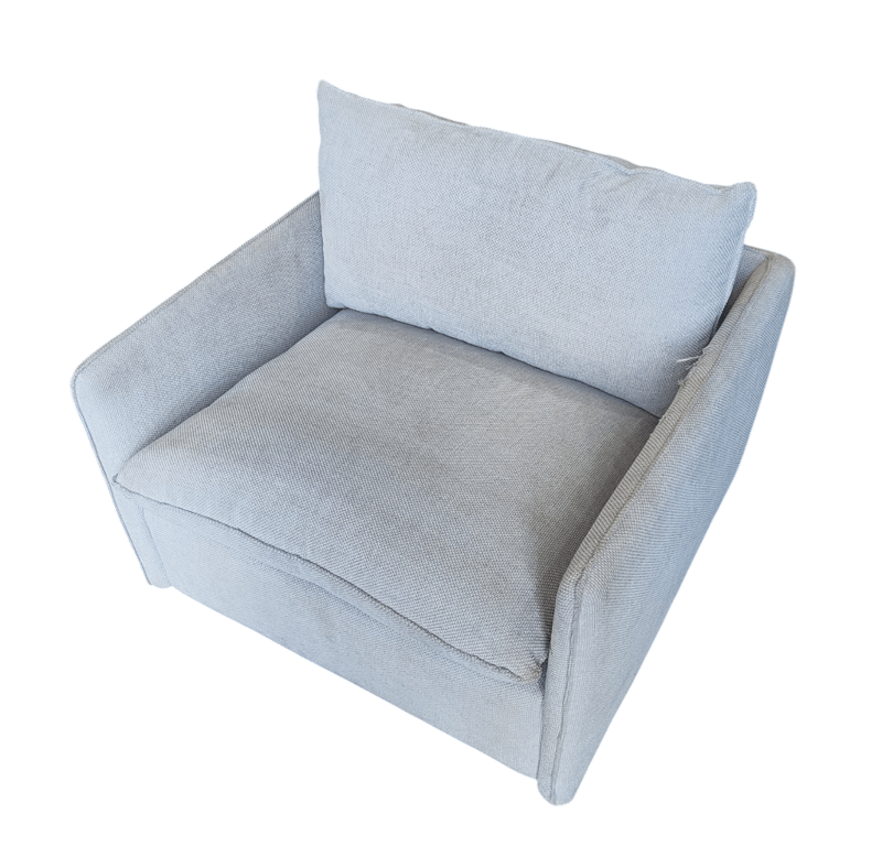One seater couch, light grey fabric. dimensions: 95cm x 98cm x 85cmNote: ripped fabric, inspection recommended, cleaning required