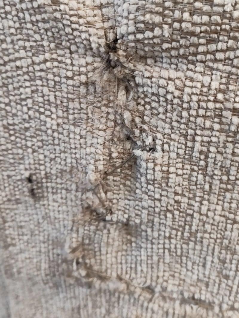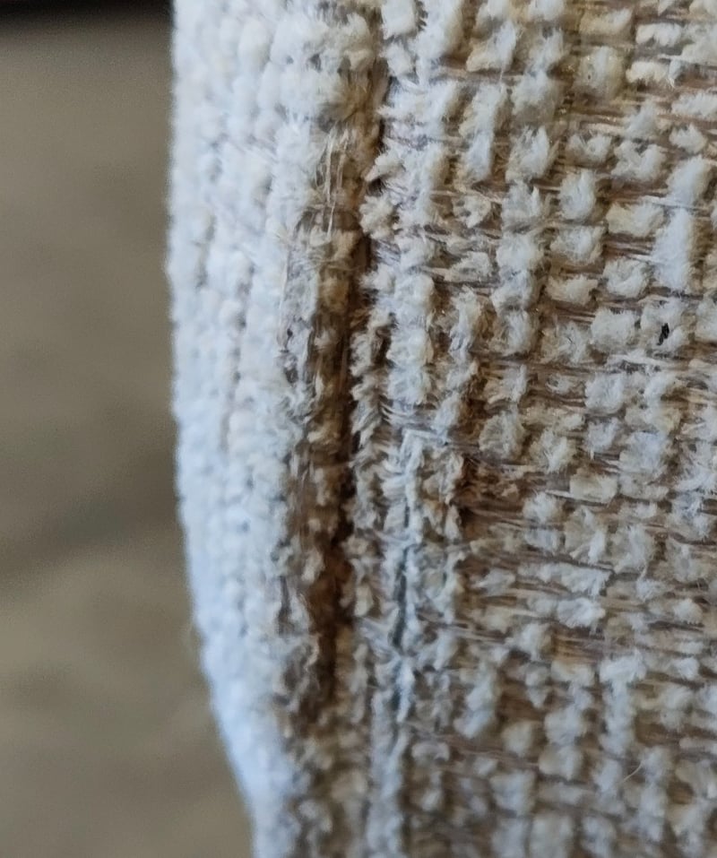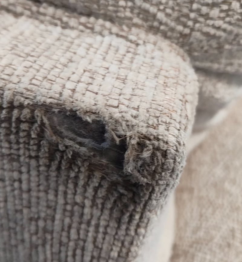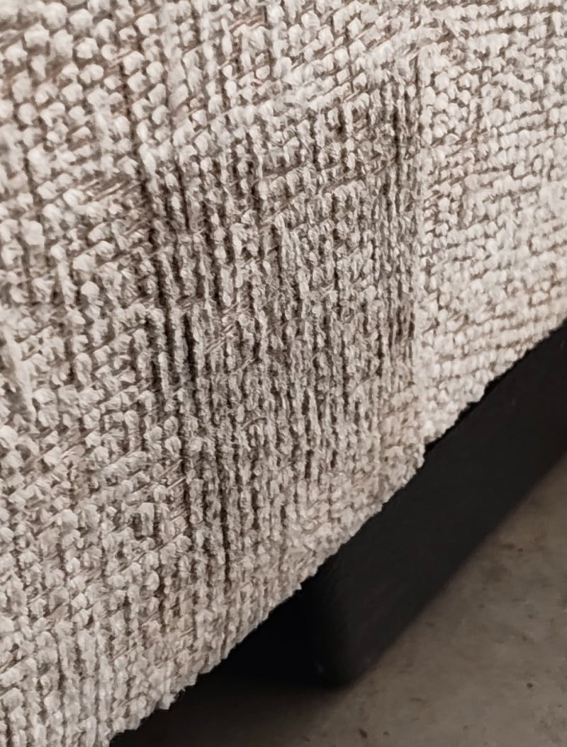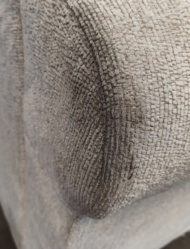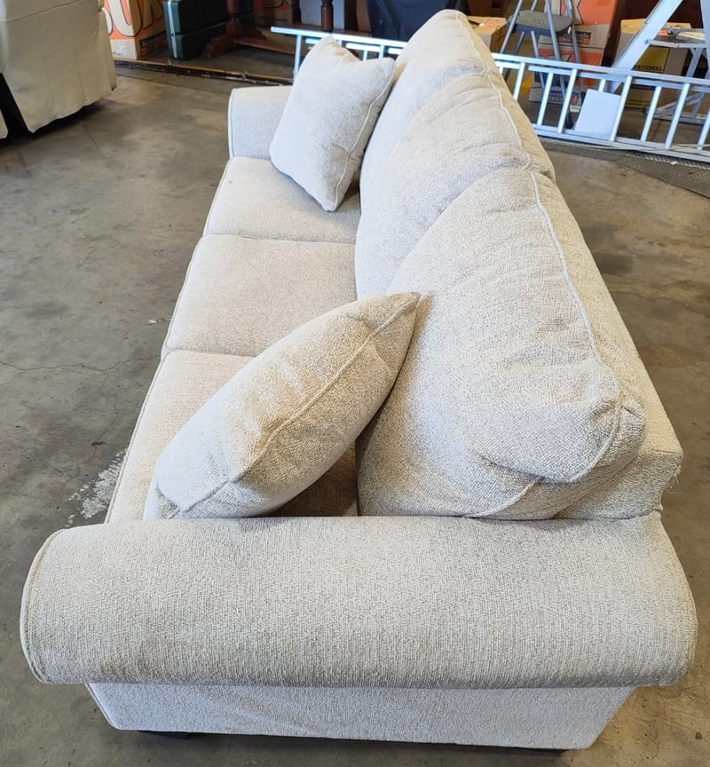 3 seater couch, light grey fabricdimensions: 100cm x 255cm x 100cm Note: damage to fabric, inspection recommended, cleaning required
