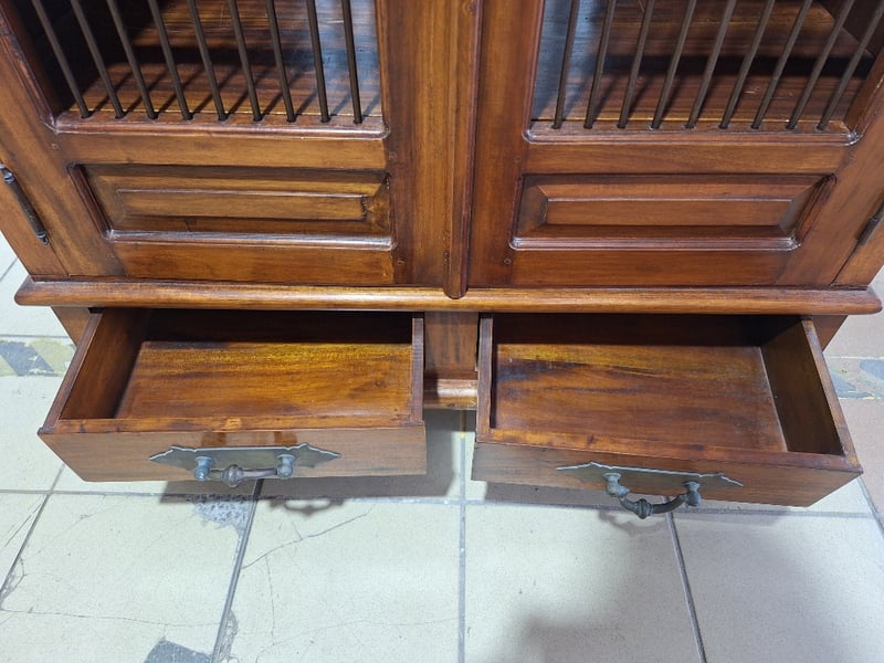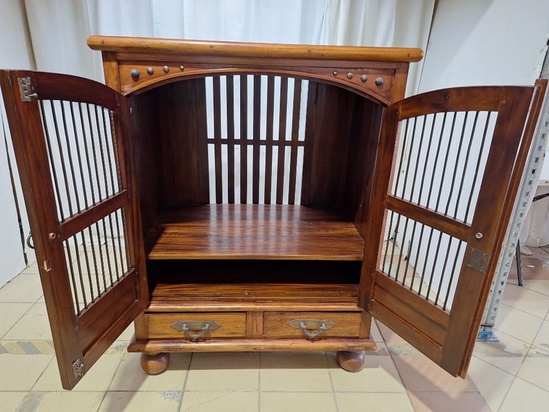 Large Cabinet With Storage, No Keys Included, Timber Style, Brown Finish