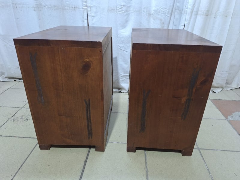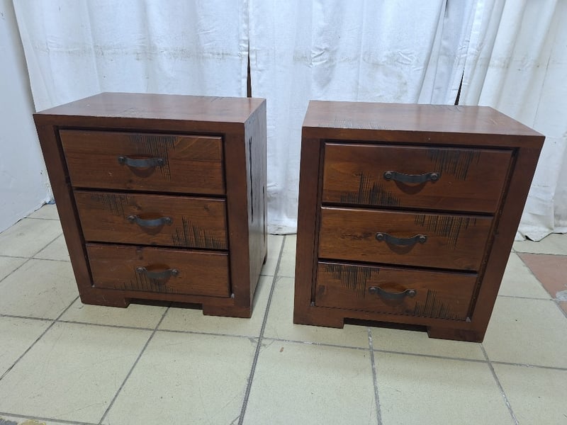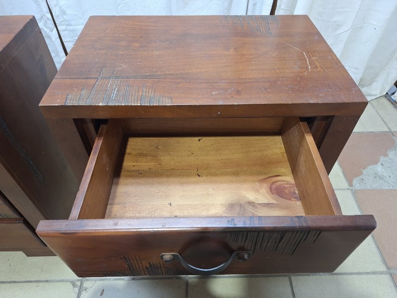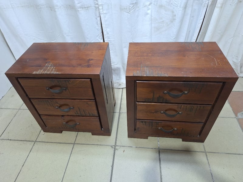 Set Of Bedside Tables With Drawers, Timber Style, Brown Finish