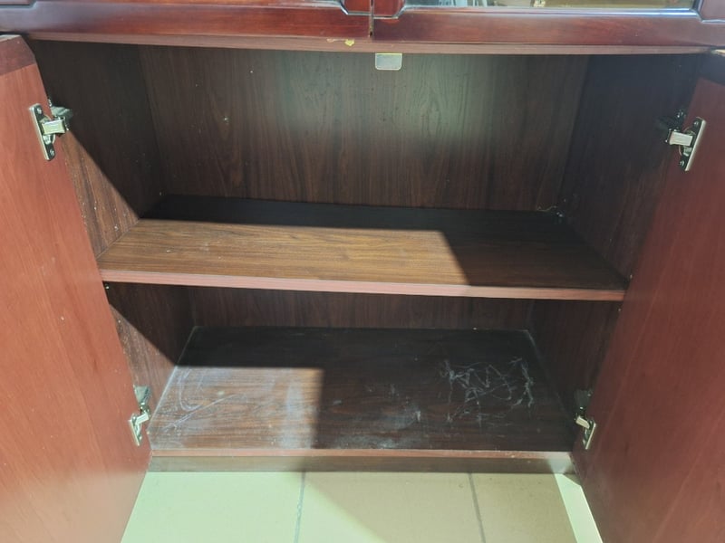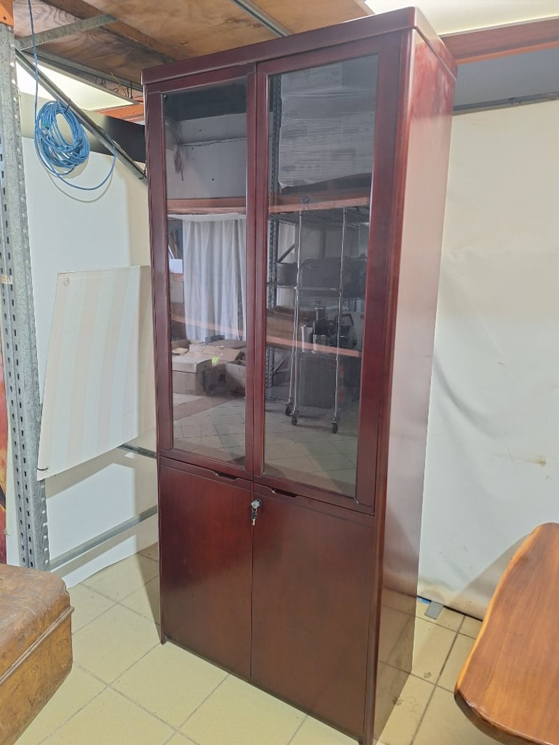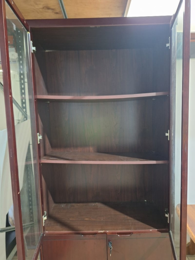 Display Cabinet With Glass Doors, Keys Included, Timber Style, Brown Finish