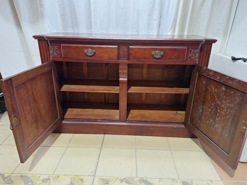 Sideboard With Storage, Key Included Timber Style, Brown FinishDimensions H:97cm W:150cm D:54cm