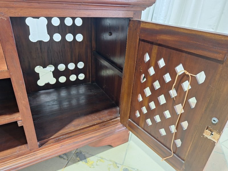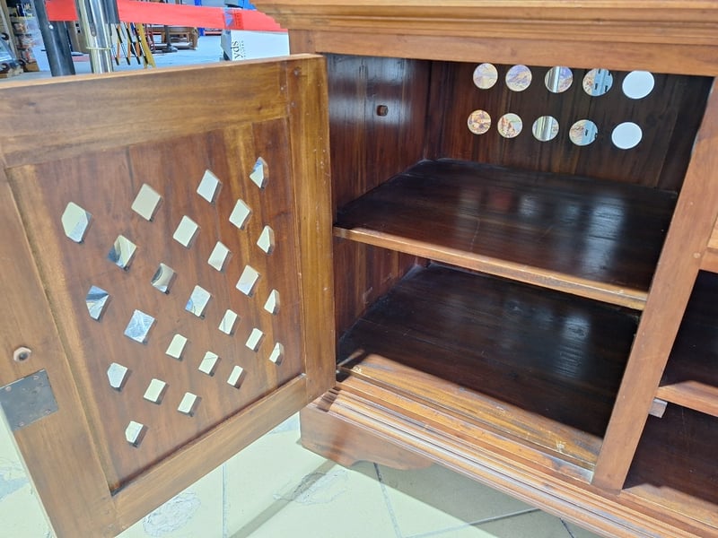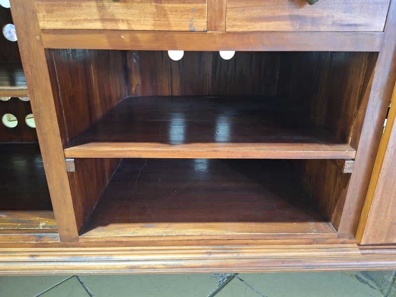 Entertainment Unit With Storage, No Keys Included, Timber Style, Brown Finish