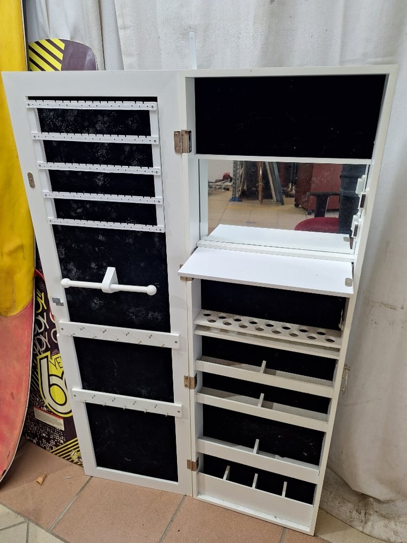 Mirrored Jewellery Cabinet, Timber Style, White Finish