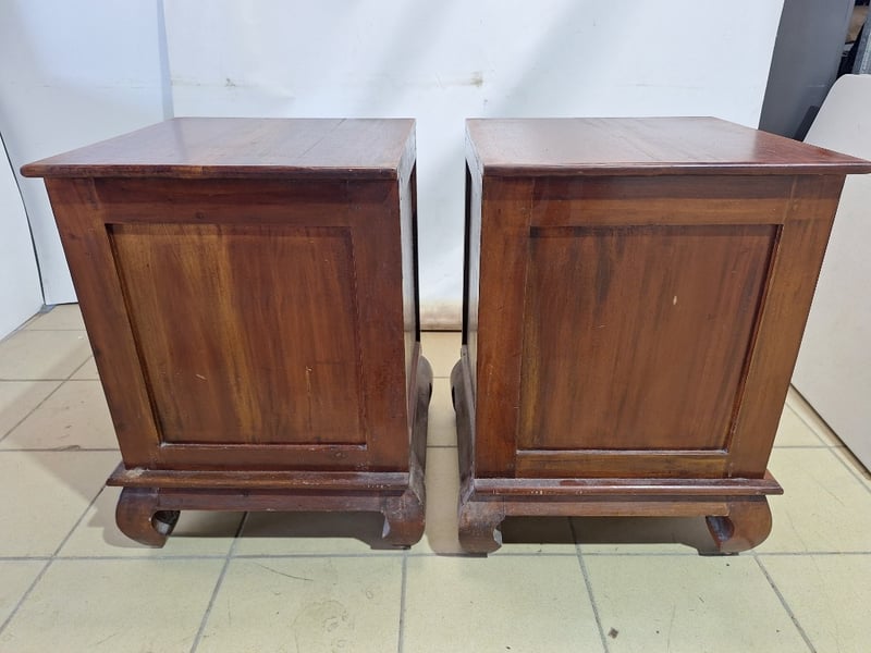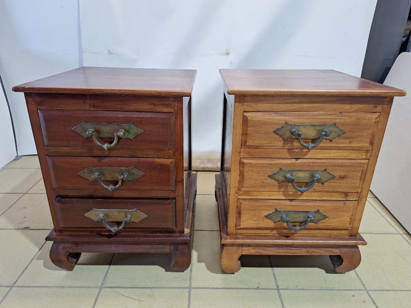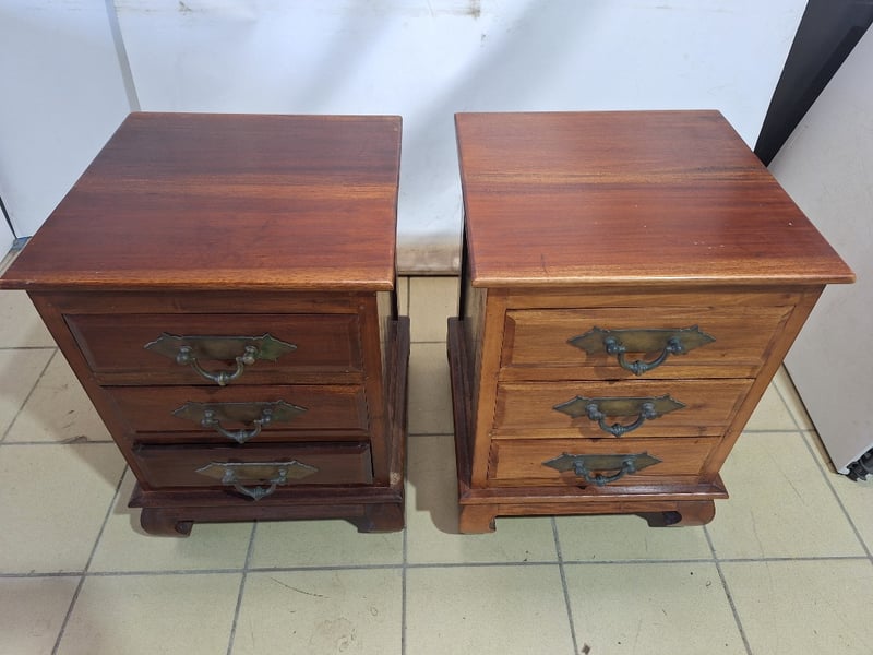 Set Of Bedside Tables With Drawers, Timber Style, Brown Finish