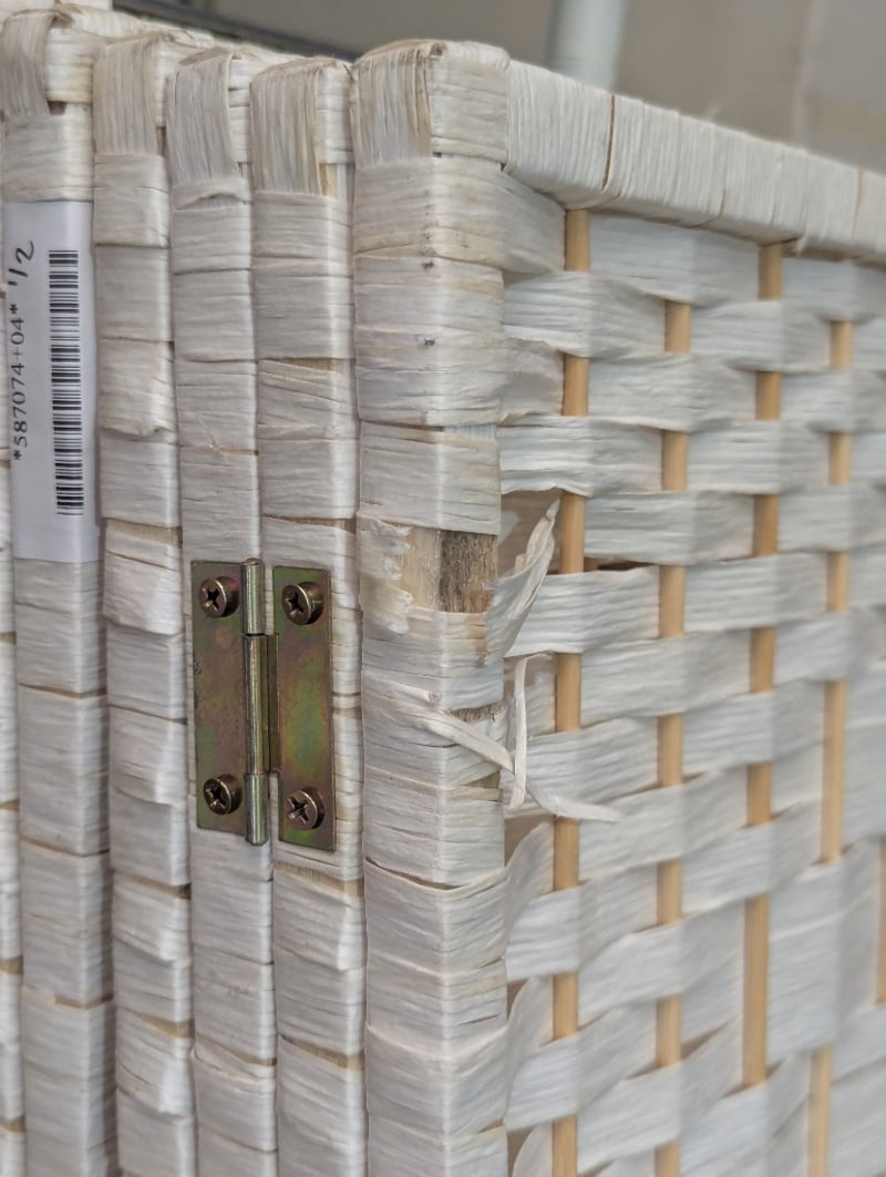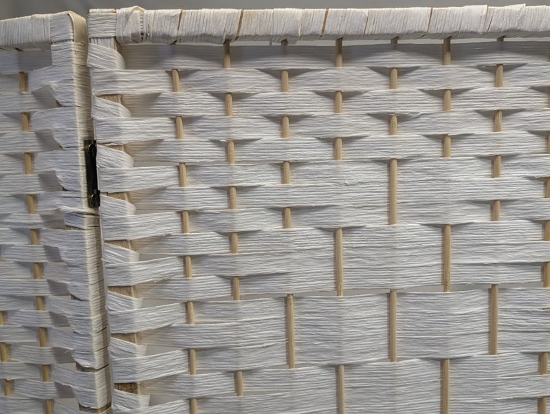 Two woven timber dividers, white woven thread wall, each divider features four panels, each panel size: 170cm h x 40cm W