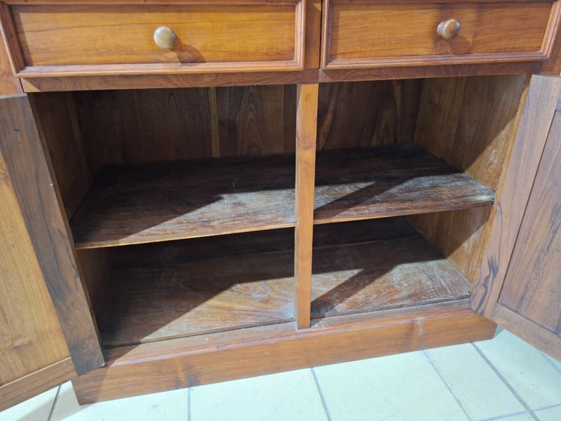 Dresser Featuring A Buffet Base With An Open Hutch, Timber Style, Brown Finish