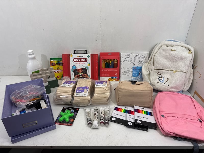 Kids Art Supplies, Assorted Brands including Keji, Kadina, Crayola, Disney ect. Items include Coloured Makers, Crayons, Pencils, Paint, Craft Sticks, Backpacks, Paint Brush ect.