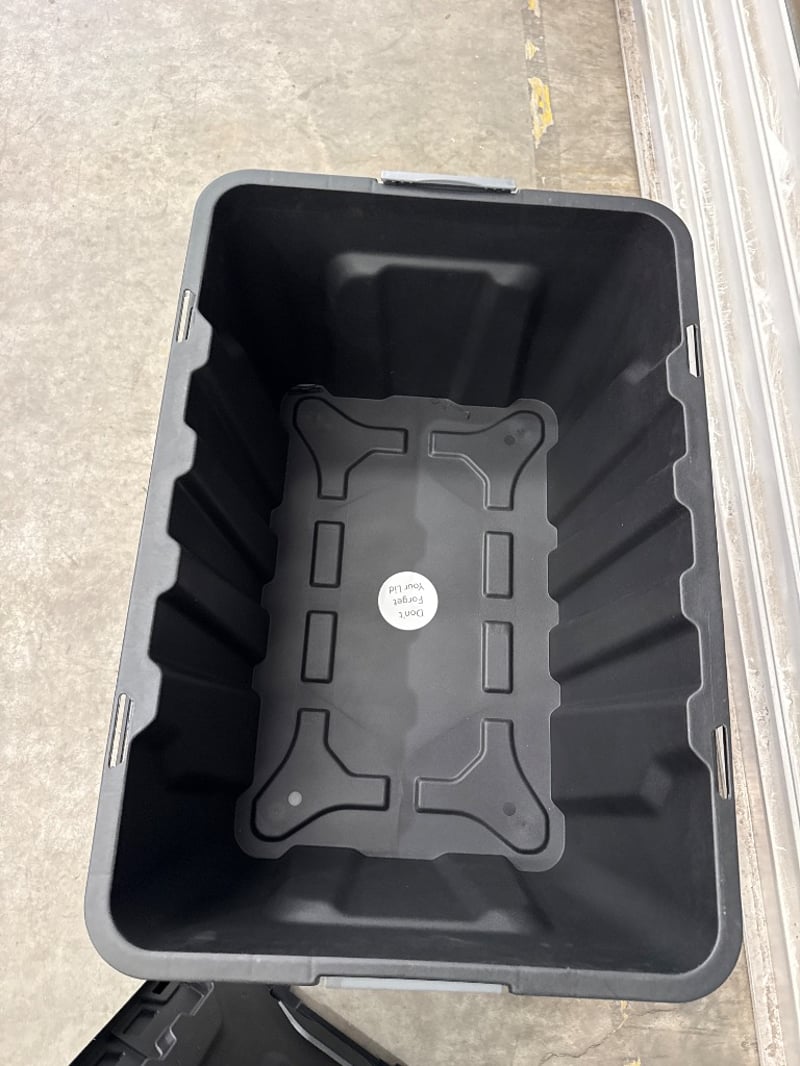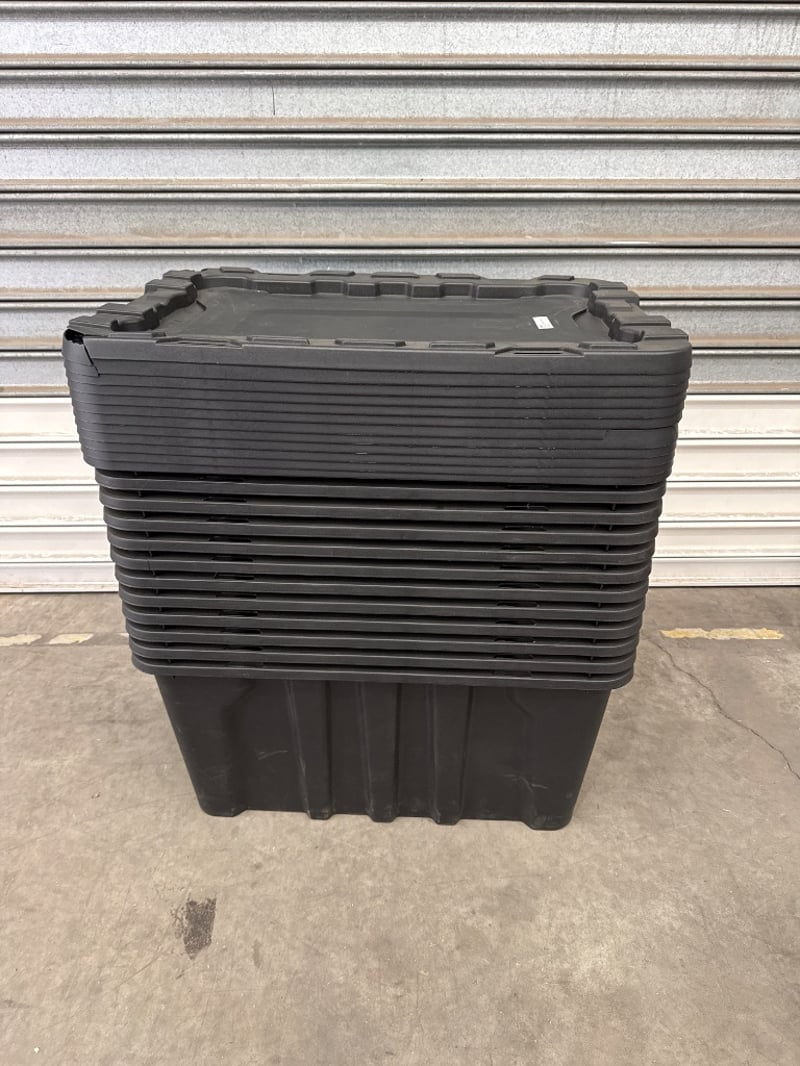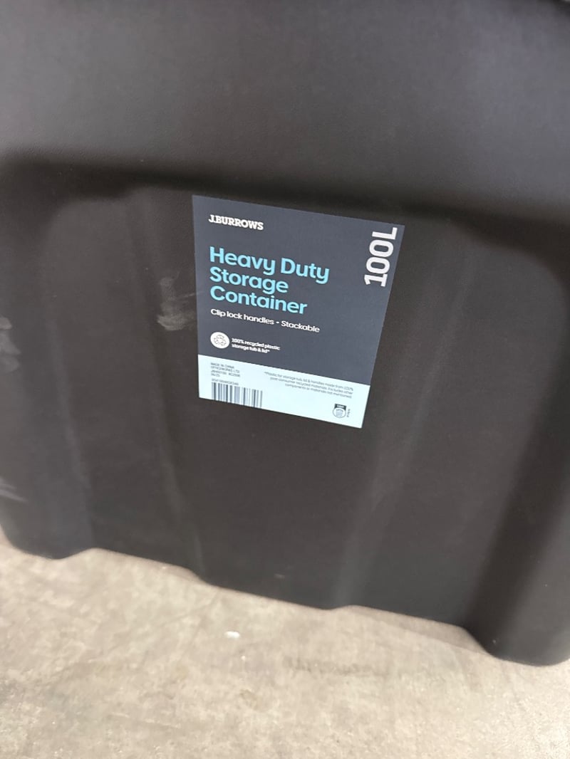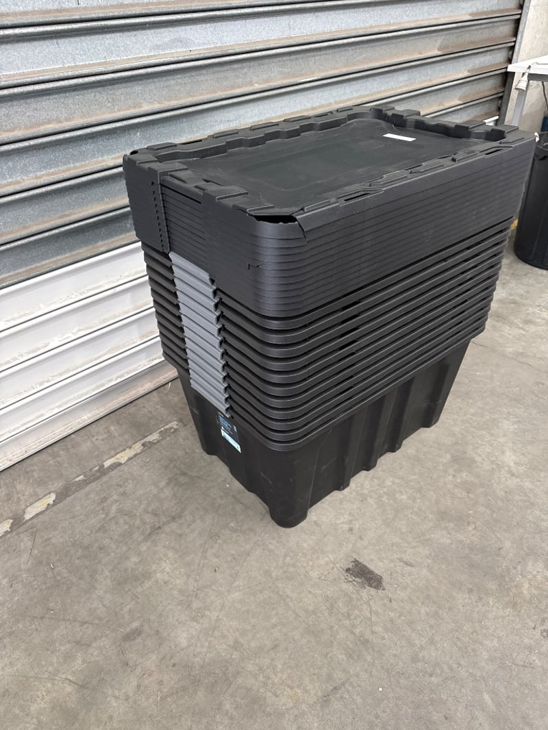Tubs, J.Burrows, Heavy Duty Storage Containers, 12 Containers with Lids, 100L. Quantity-12 Containers, Sold as lot