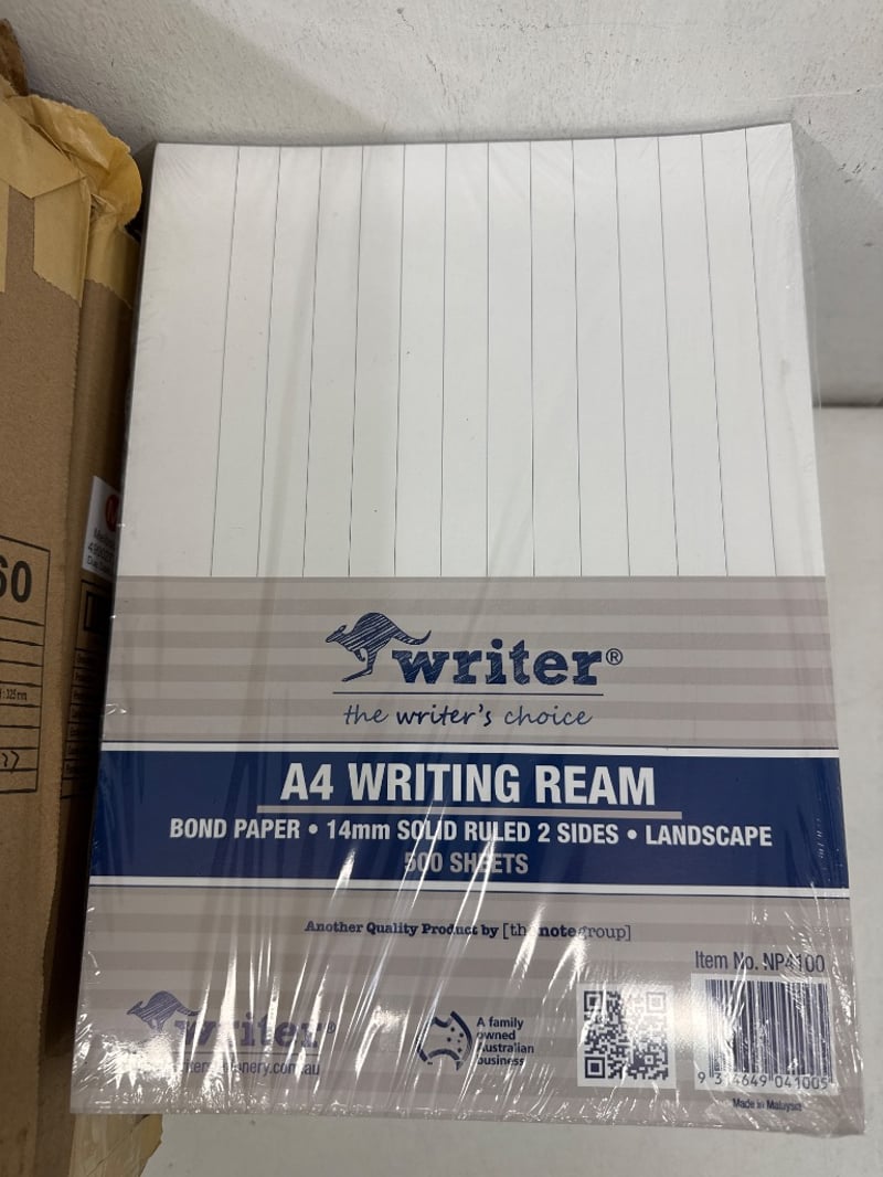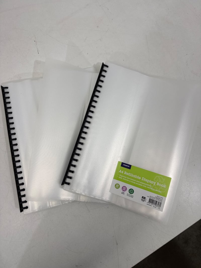 Office Supplies, Assorted office supplies including Bond paper and white folders.