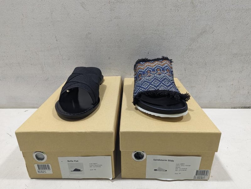 • The Mode Collective, Sandstorm Slide, Blue/Orange Weave, Size: 41