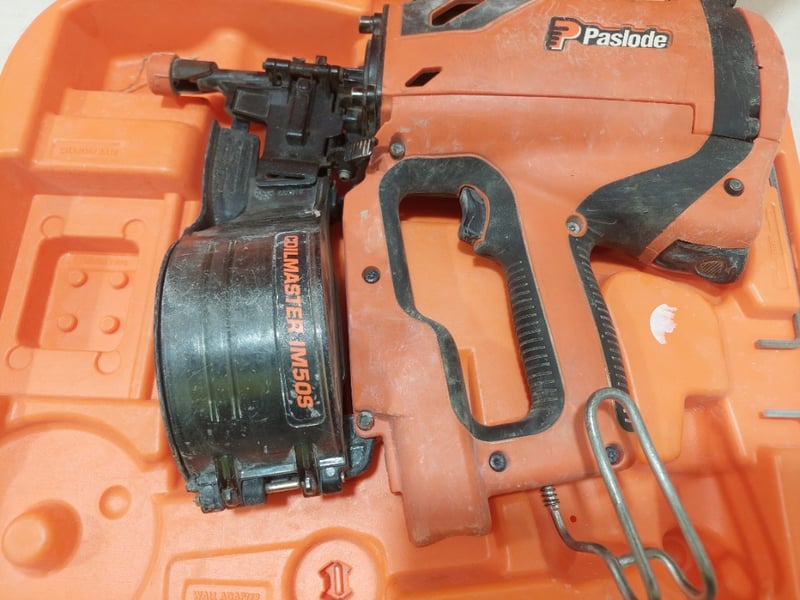 Paslode Impulse CoilMaster IM50S cordless coil nailer, includes case.