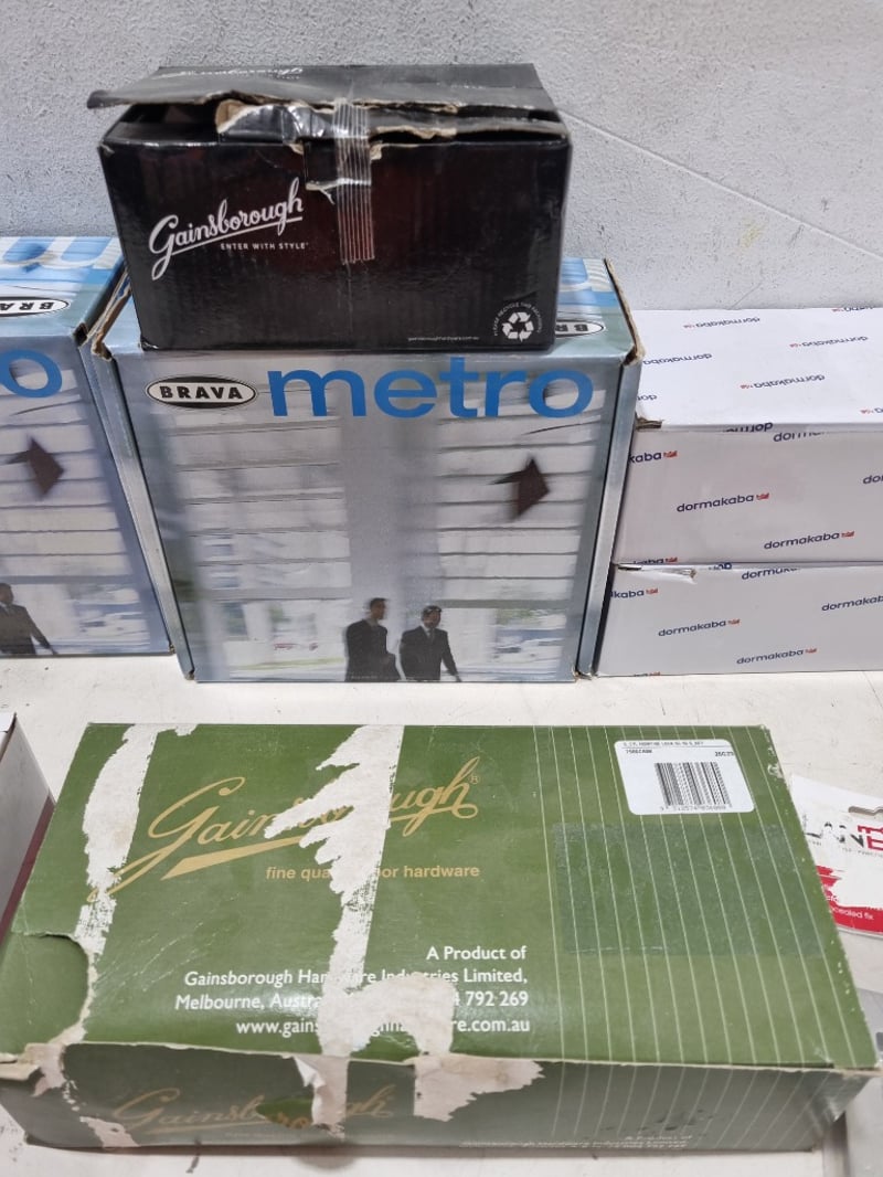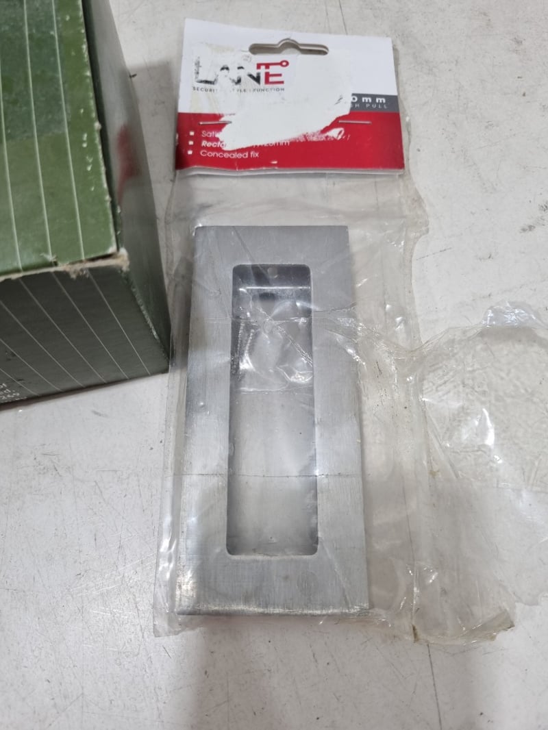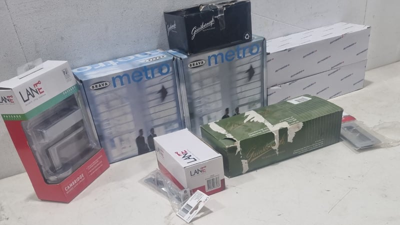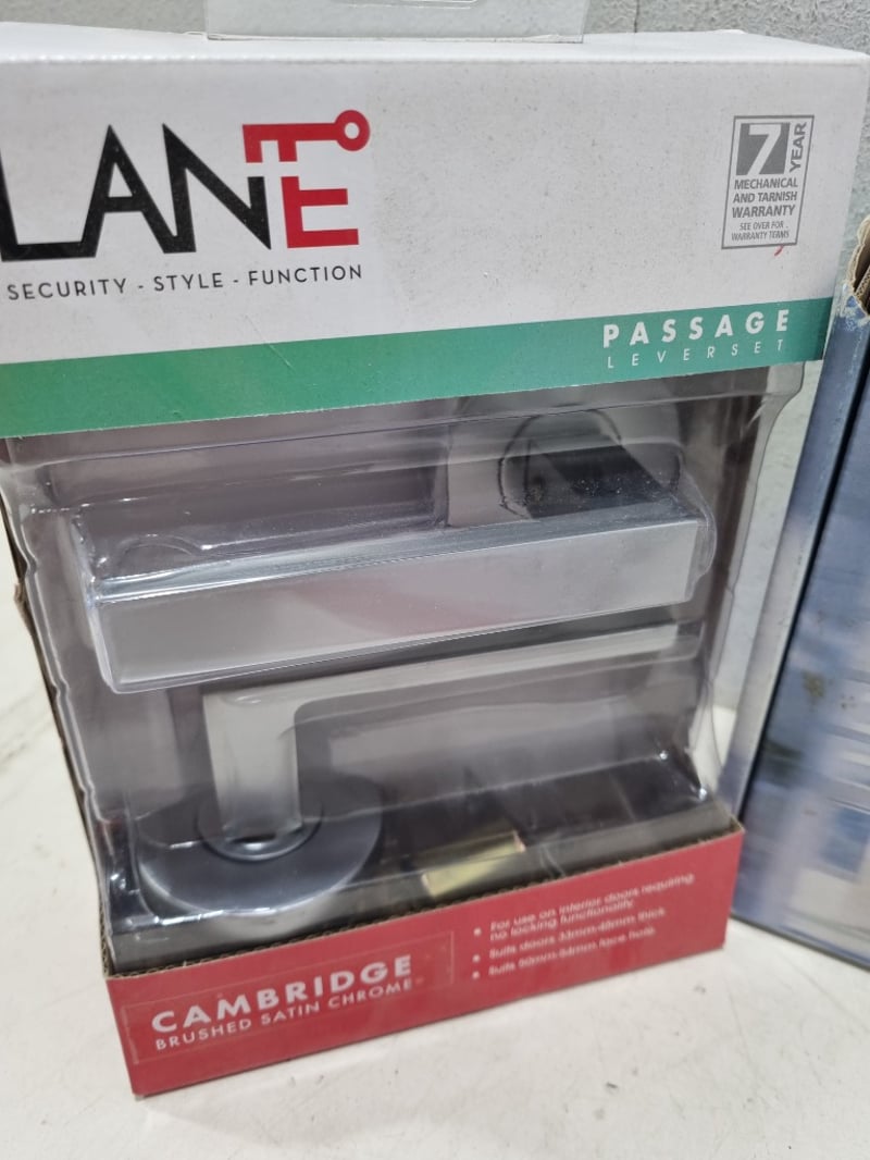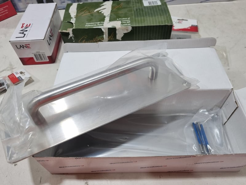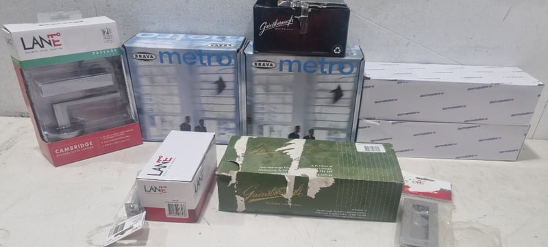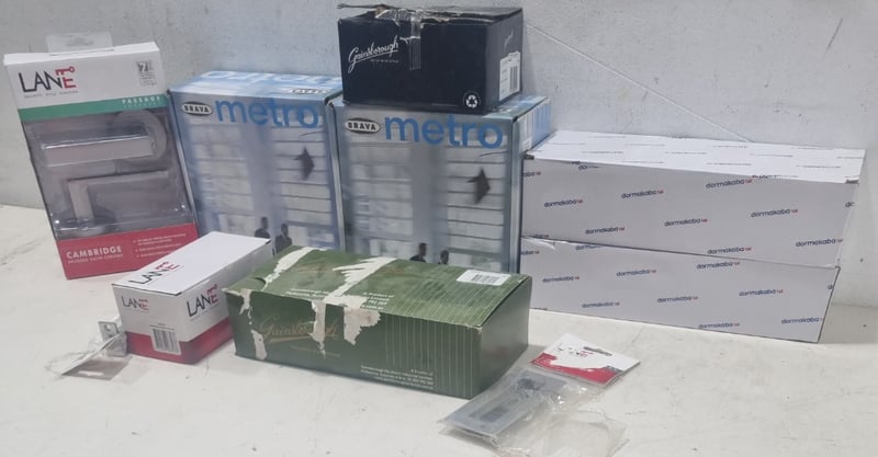 Assorted bathroom accessories lot, includes Cambridge Brushed satin chrome door handle, Lane Buckingham dummy Rd back box and more...brands include Lane,Brava,Gainsborough.