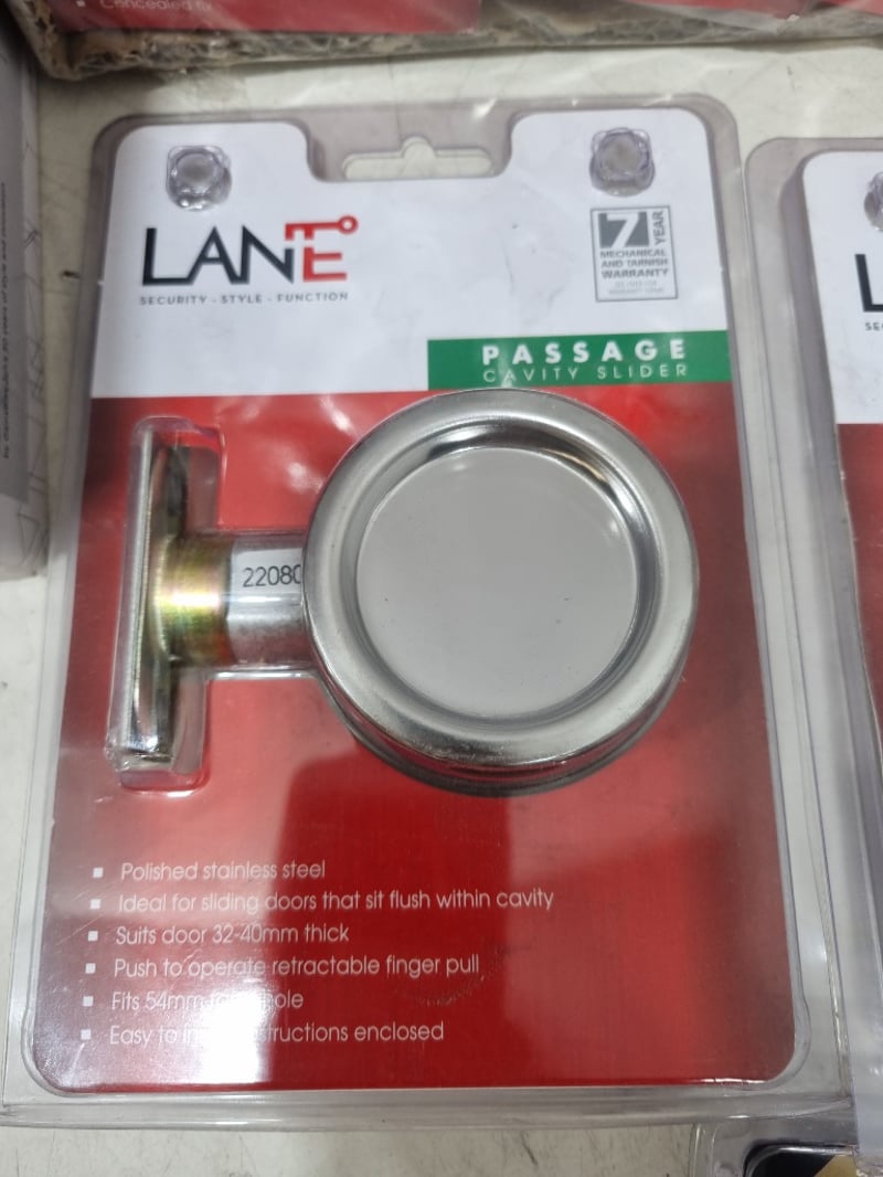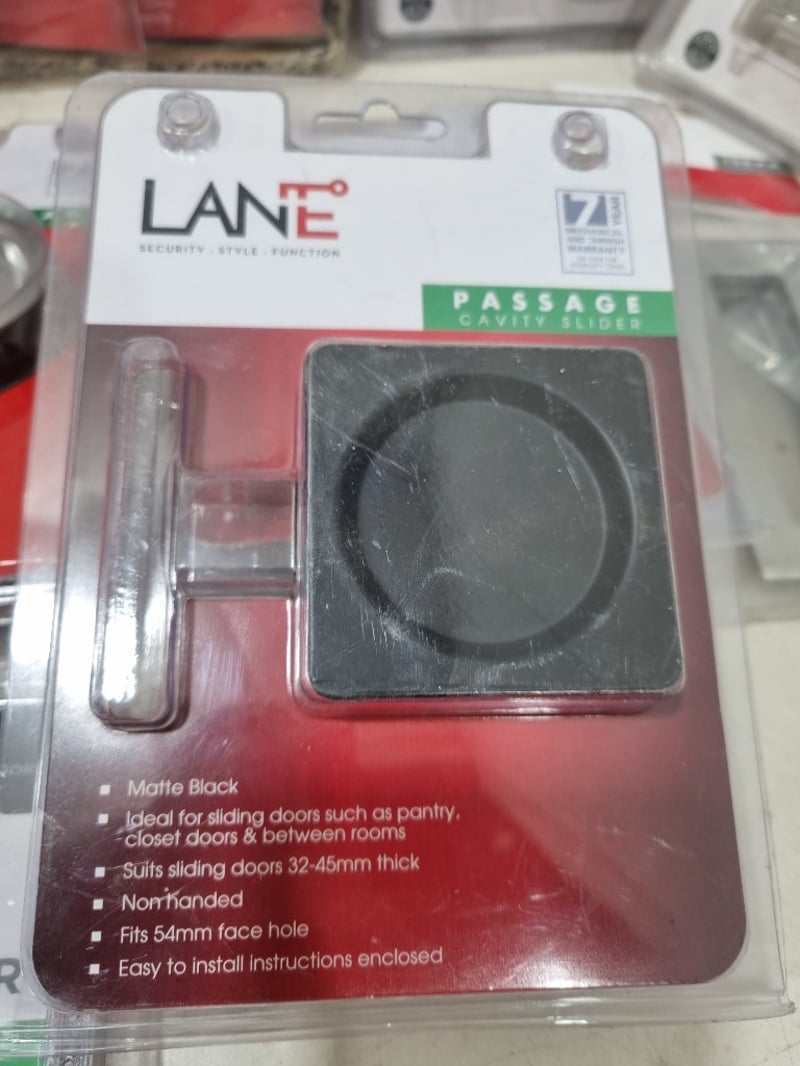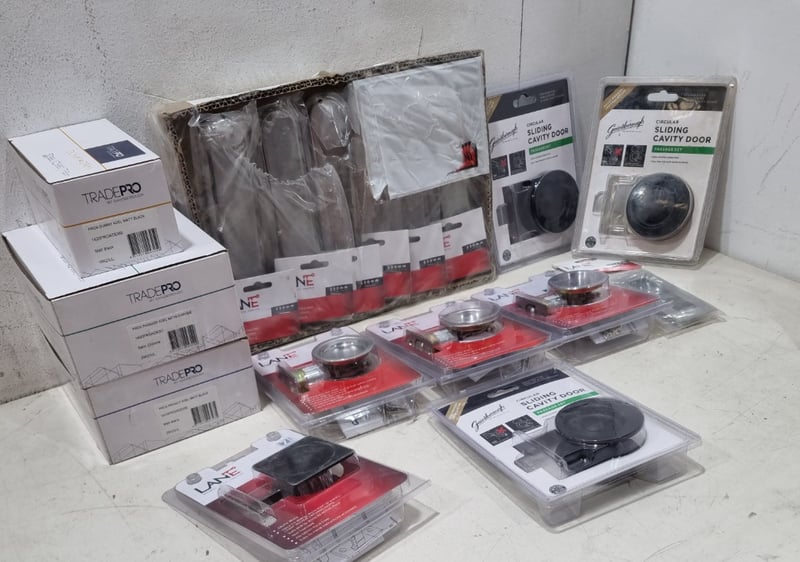 Assorted door accessories,includes pros passage adel satin chrome, Lane stainless steel plush pull, sliding cavity door passage set and more......