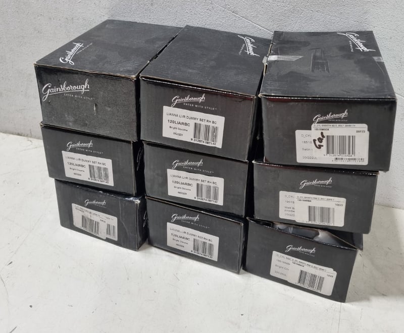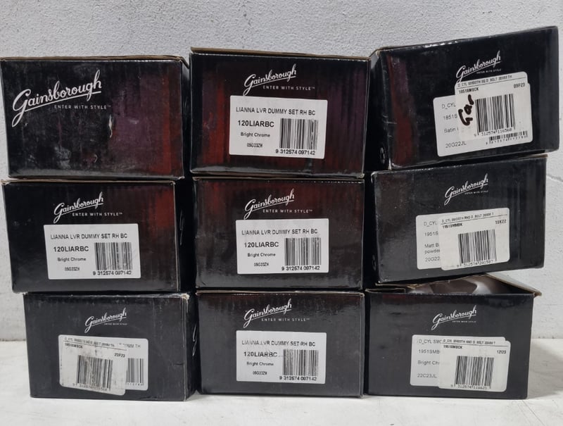 Assorted door handles, Gainsborough brand, includes Liana LVR dummy set - chrome, D_CYL smooth -various colours