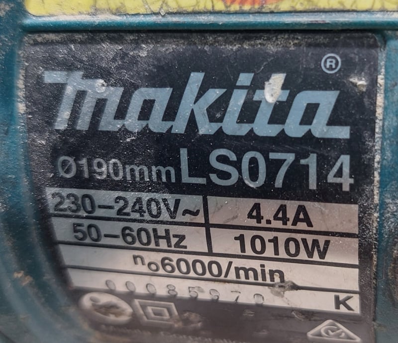 Makita 190mm Slide Compound Mitre Saw. Model: LSO714. Notes: item untested and signs of wear.