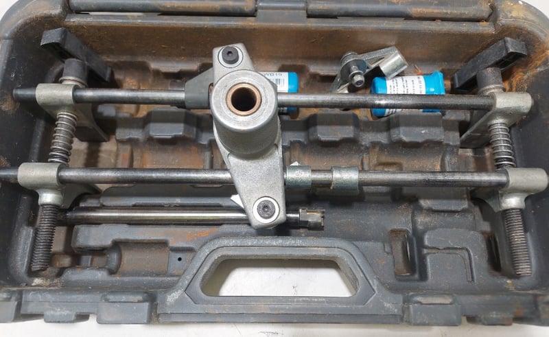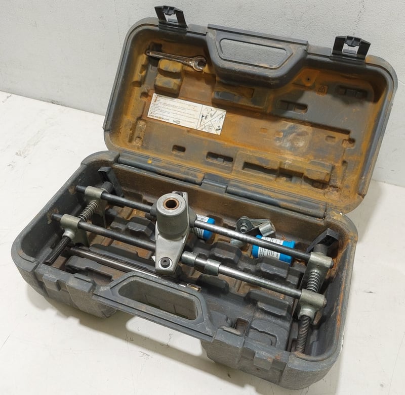 Door lock installation kit,featuring a hole boring jig. Notes: item untested and signs of wear.