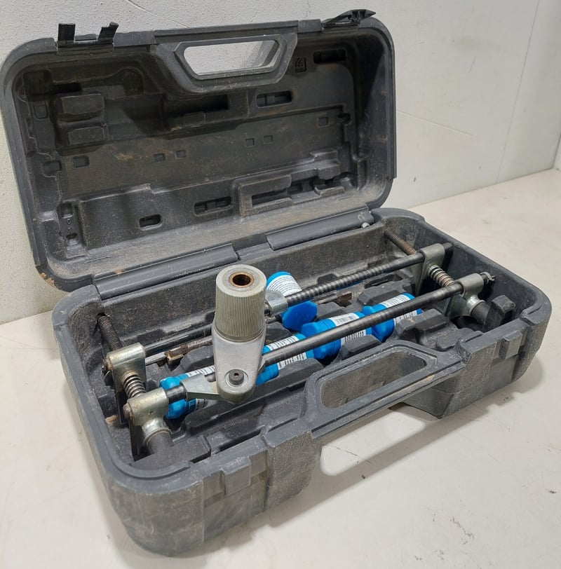 Door lock installation kit,featuring a hole boring jig.