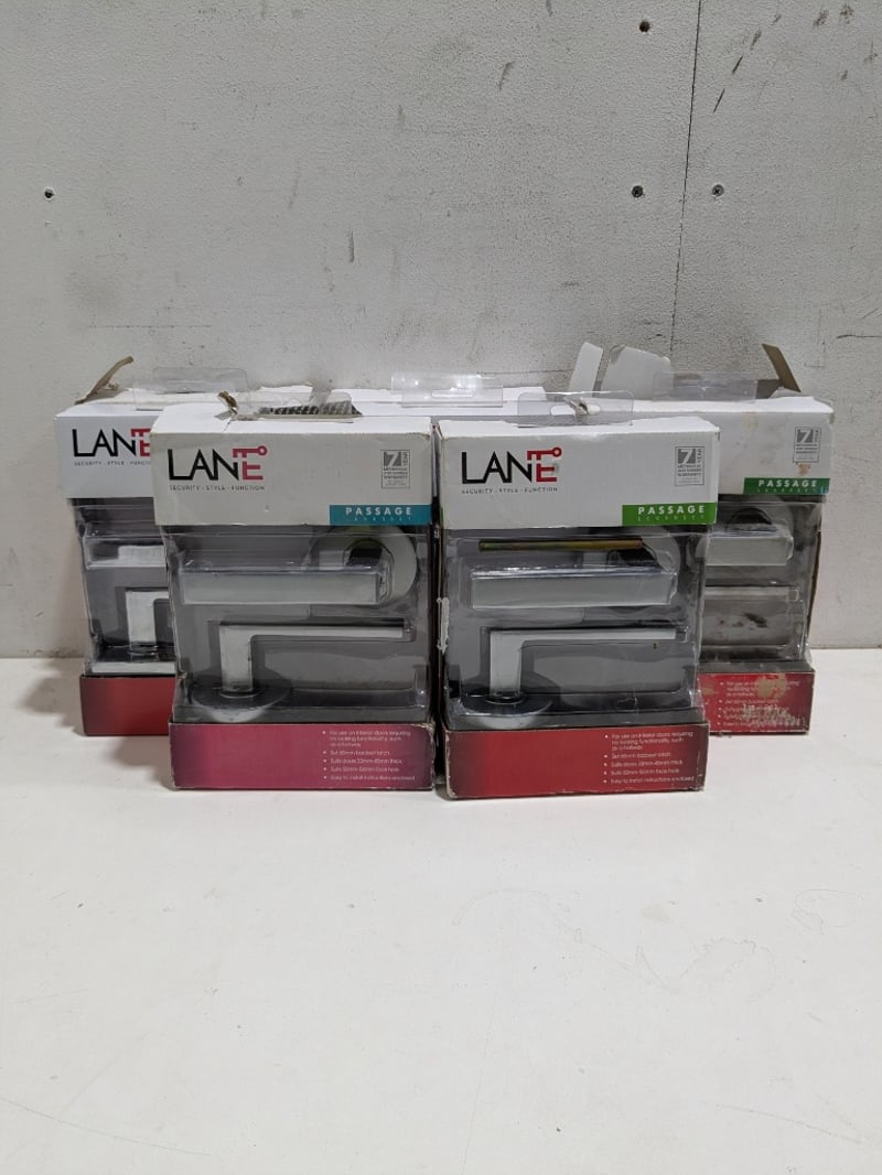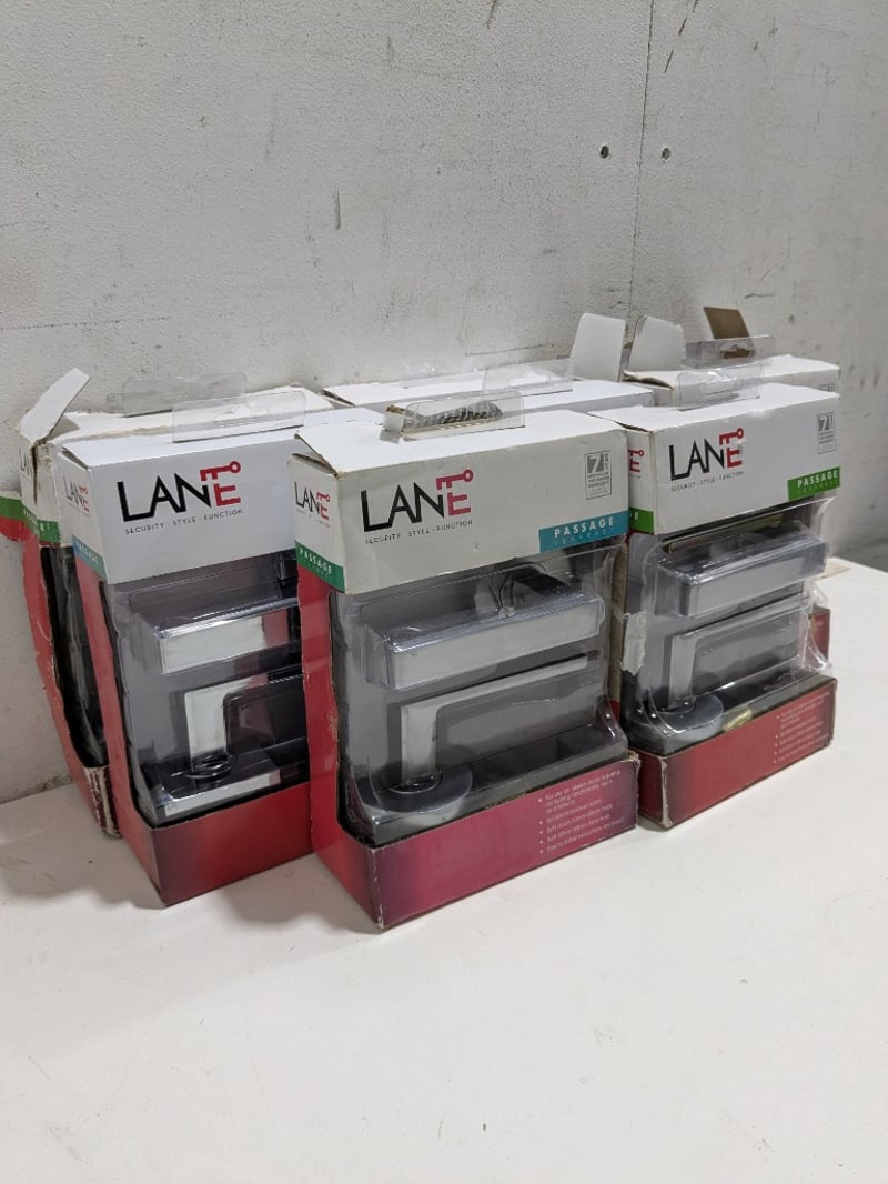 Lot of assorted Lane Passage Leverset satin chrome handle set.