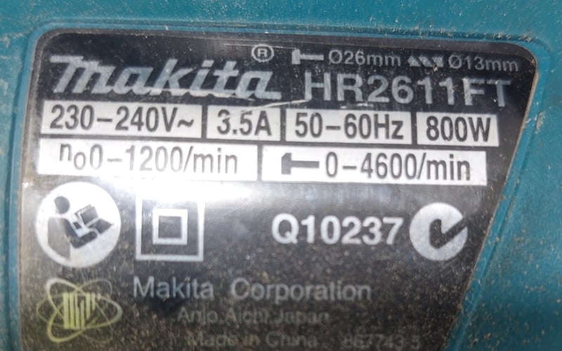Makita HR2611FT SDS-Plus Rotary Hammer, includes case. Notes: item untested and signs of wear.