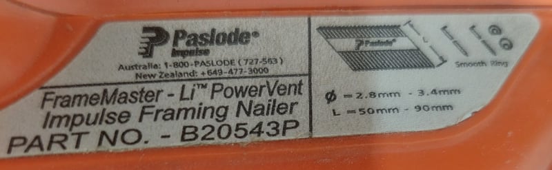 Paslode FrameMaster-Li PowerVent Impulse Framing Nailer. Notes: item untested and signs of wear.