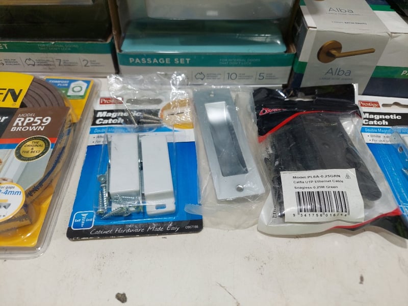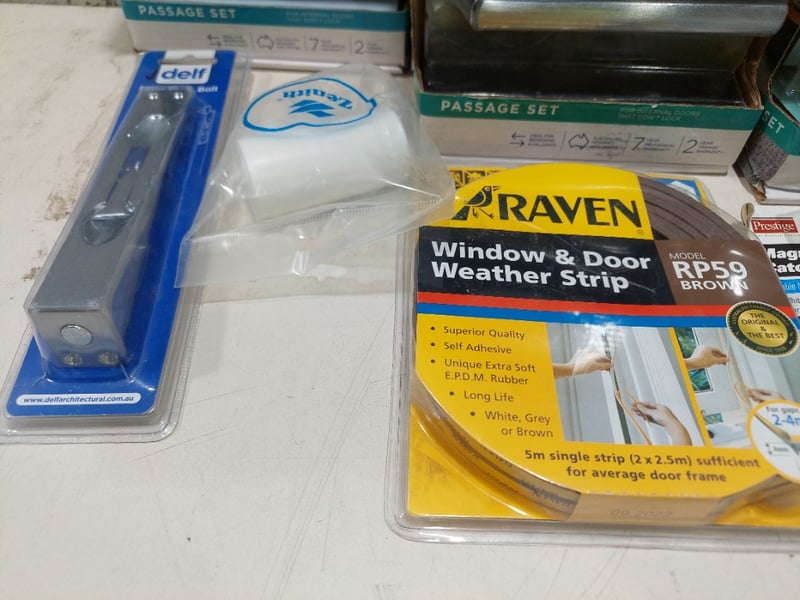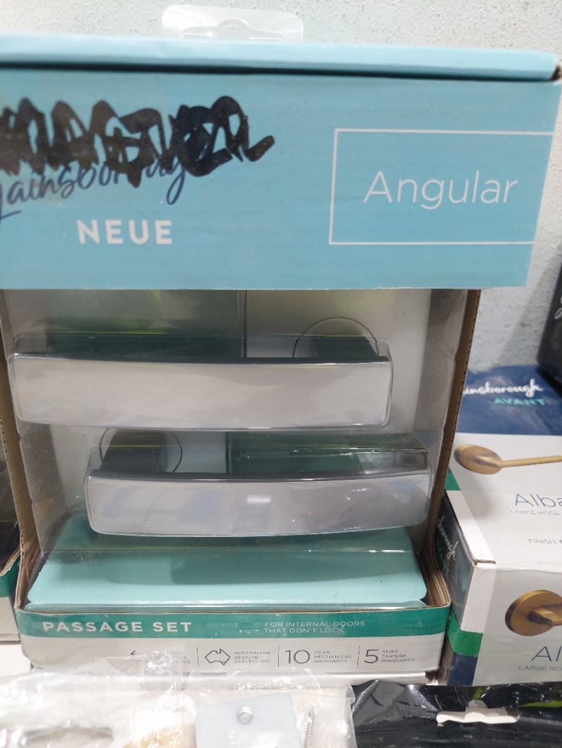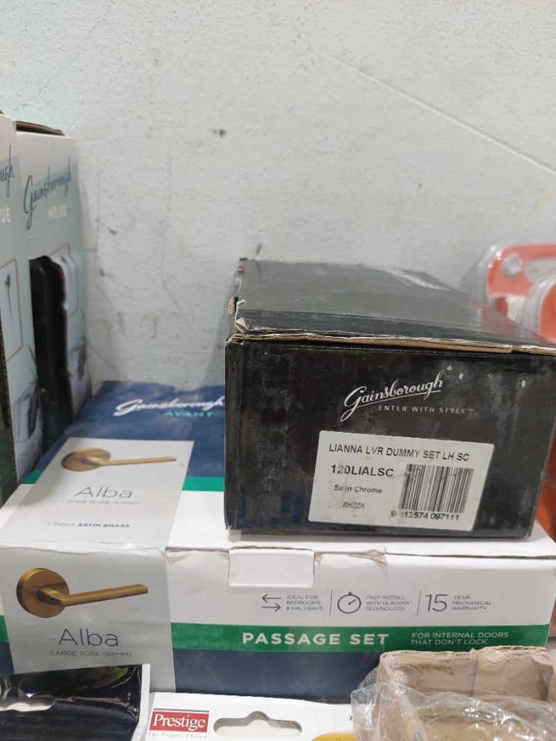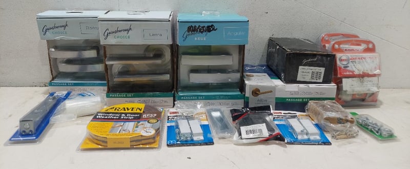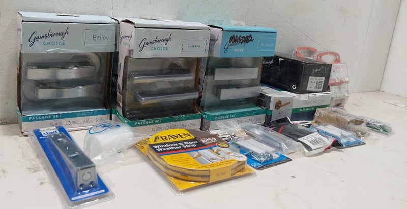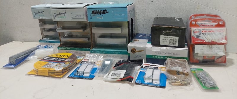 Assorted lot includes, Gainsborough Bailey passage set, Alba large rose passage set, Lane deadbolts and more...