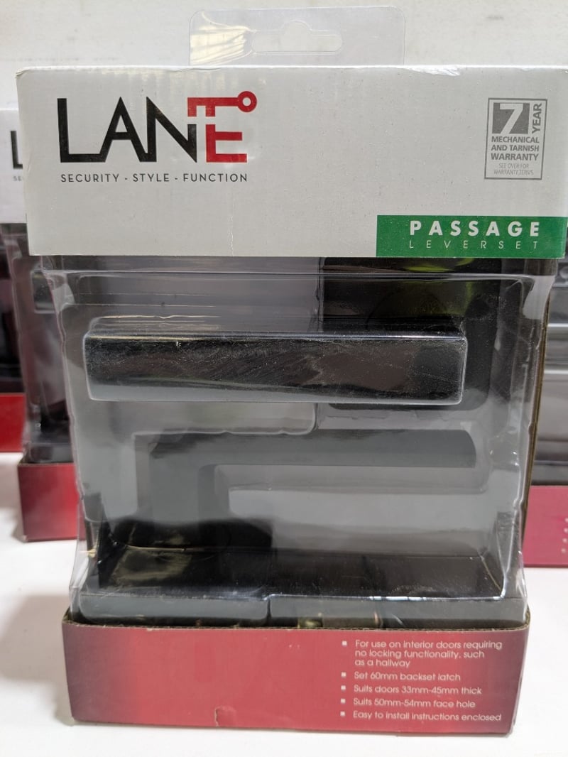 Lot of assorted Lane Passage Leverset satin chrome handle set and black matte set
