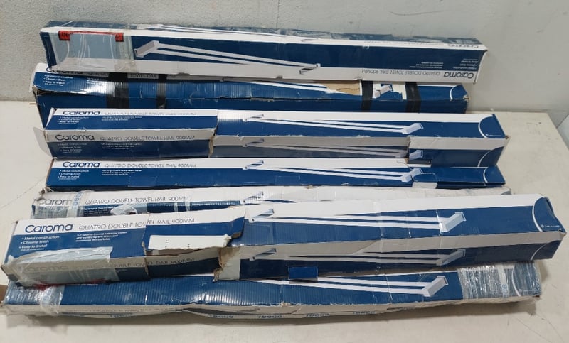 Caroma quatro double towel rail 900mm. Sold as a lot. Note: signs of wear.