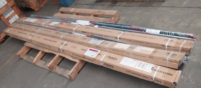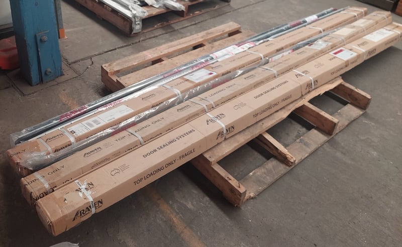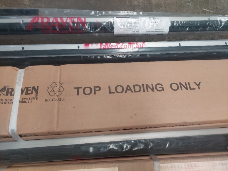 Assorted lot of door seals, Raven brand.Qty to pallet Dims range from 275cm to 290cmSold as a lot.Notes: items untested and signs of wear.
