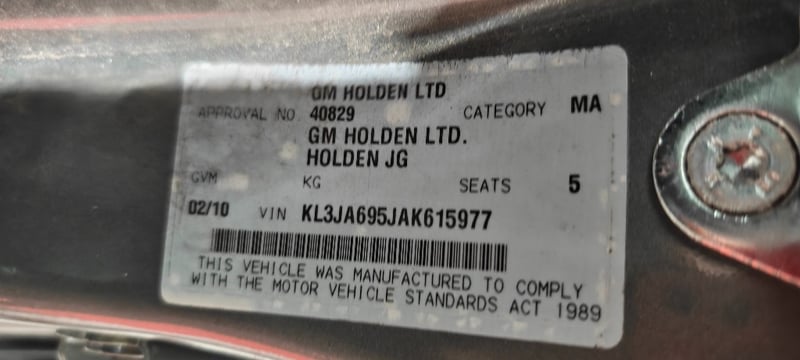 VIN / Chassis No: KL3JA695JAK615977