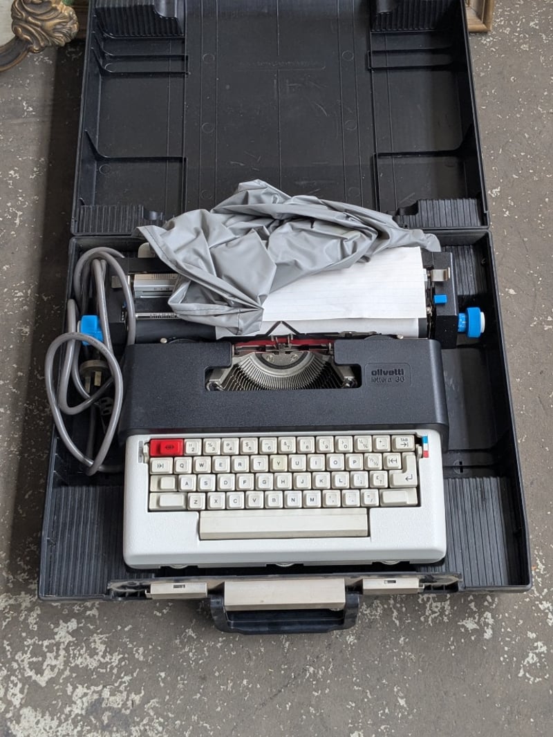 Homewares, including 2 x lamps at 88cm tall, 4 x framed artworks, 1 x mirror and Olivetti lettera 36 Typewriter