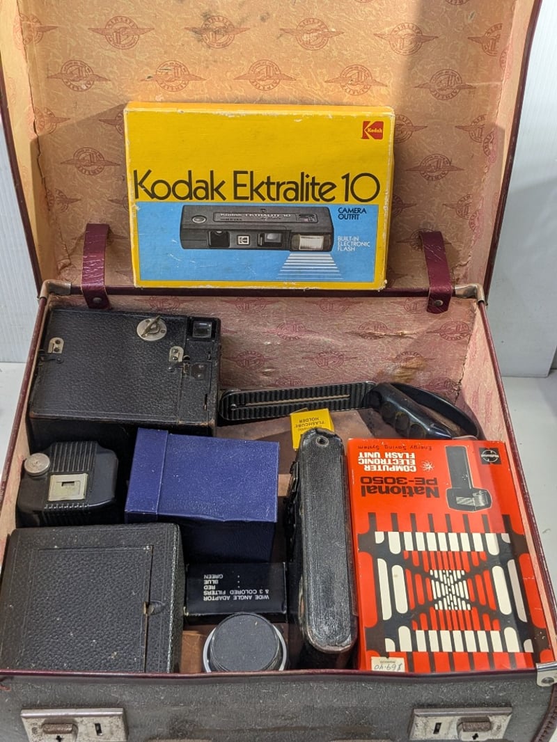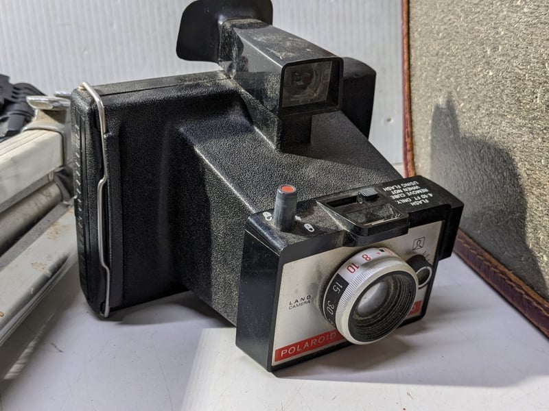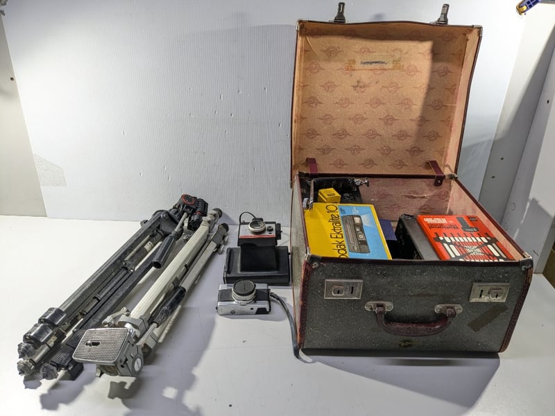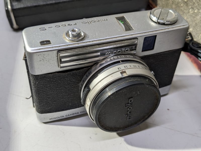Cameras, includes Minolta repo-S, Polaroid colour pack 80 and various accessories