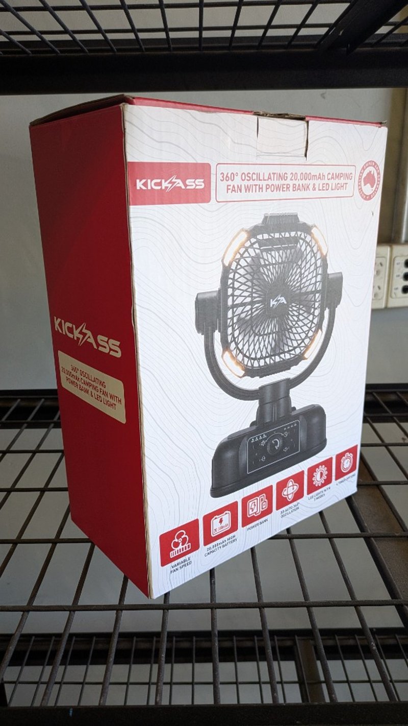 360deg Oscillating 20,000mAh Camping Fan With Powerbank and Light