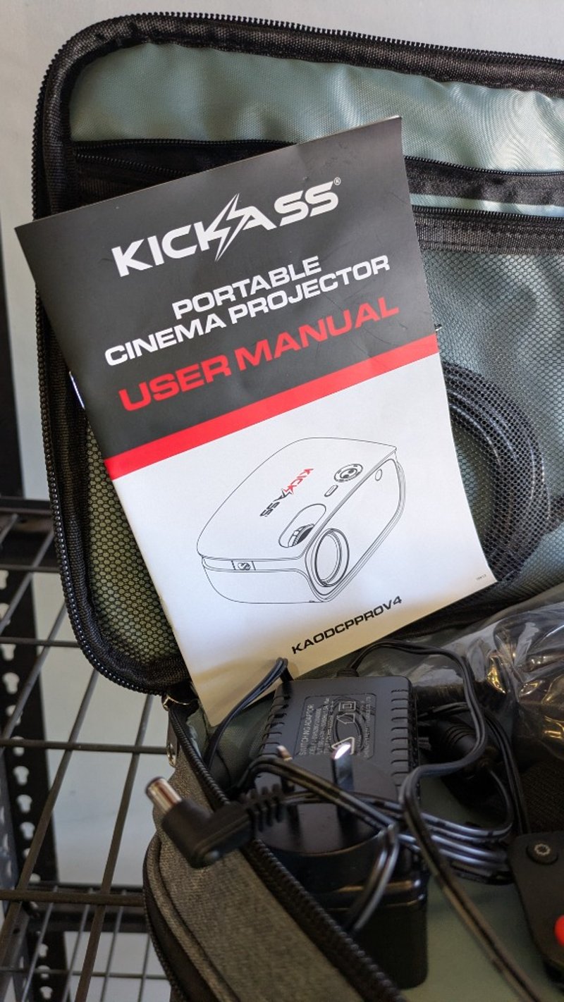 RRP$299 - Portable Cinema Projector with Adaptor, Remote and Carry Bag. Untested.