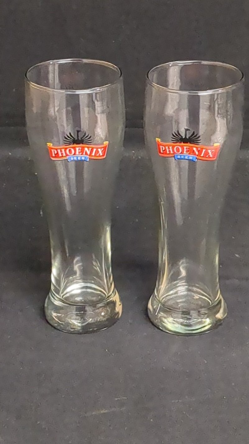 2x PHOENIX BEER Mauritius 2 x PILSNER GLASSES Sold as Lot