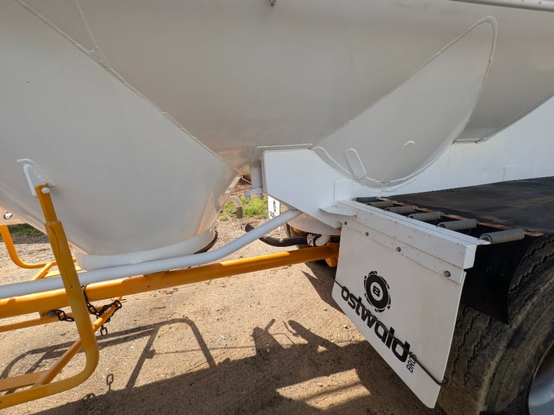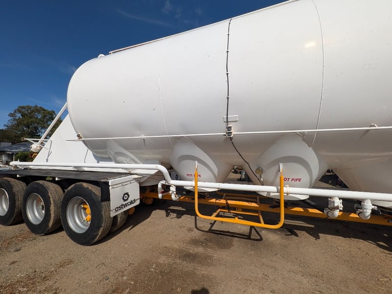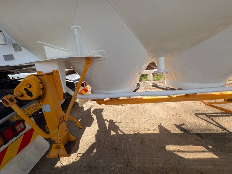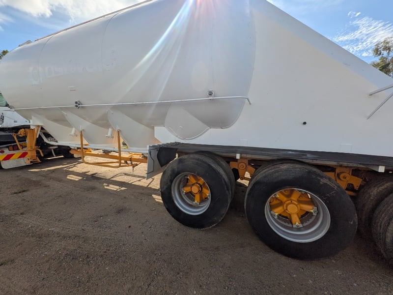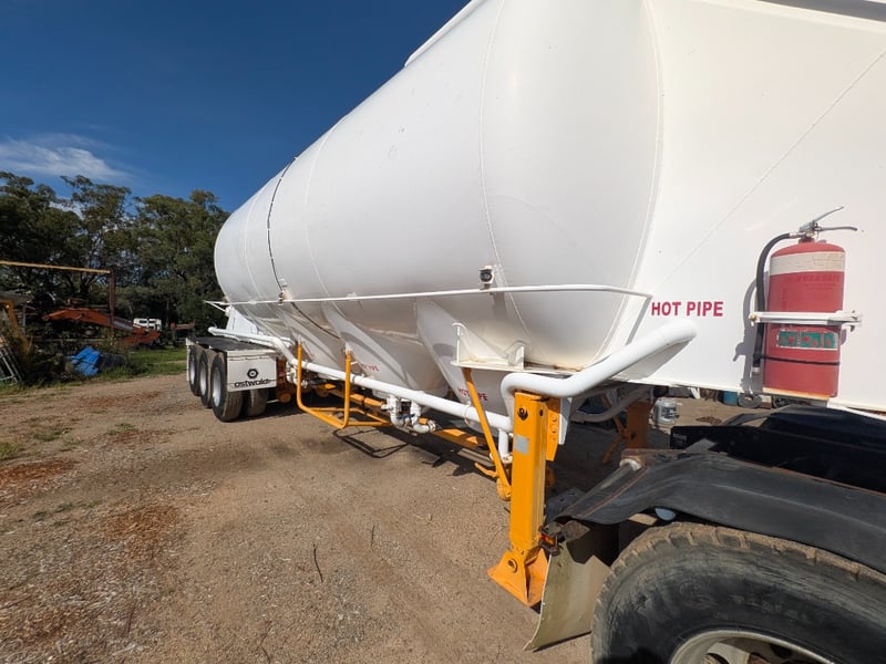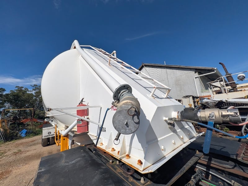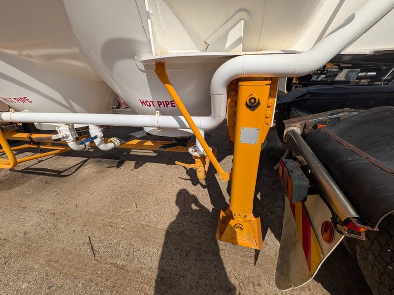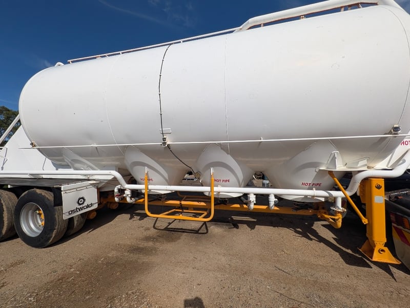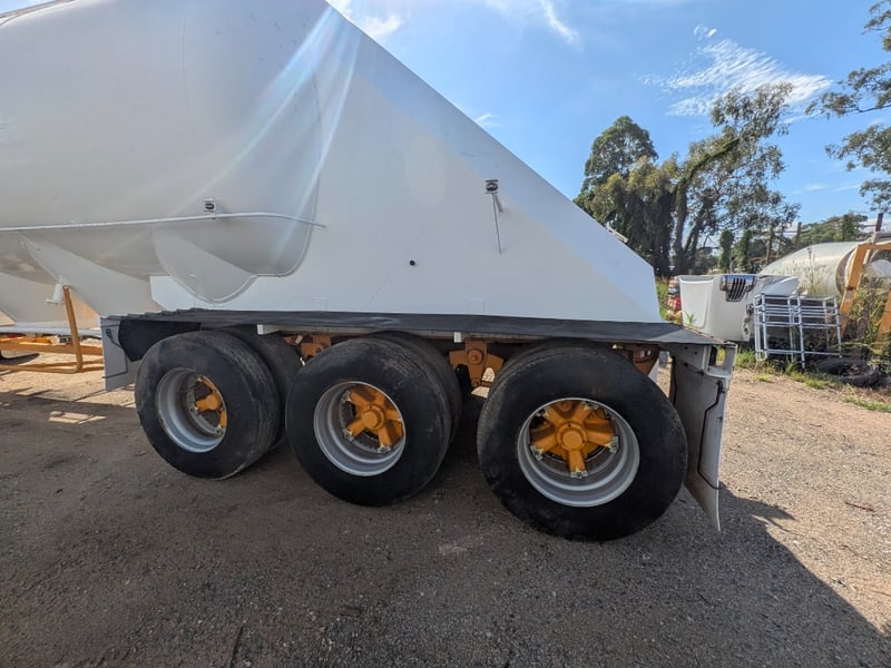 Tri Axle Tanker Trailer Type: Tri Axle Tanker Trailer Configuration: 3 Axle – Airbag Suspension Colour: White Tank / Yellow Chassis Notes/Extras: Fully Refurbished, Repainted, Fitted with new Valves/ Features: Large cylindrical steel tank, Insulated tank design, Top ladder access, Rear lights & reflectors fitted, Ostwald branded mudflaps