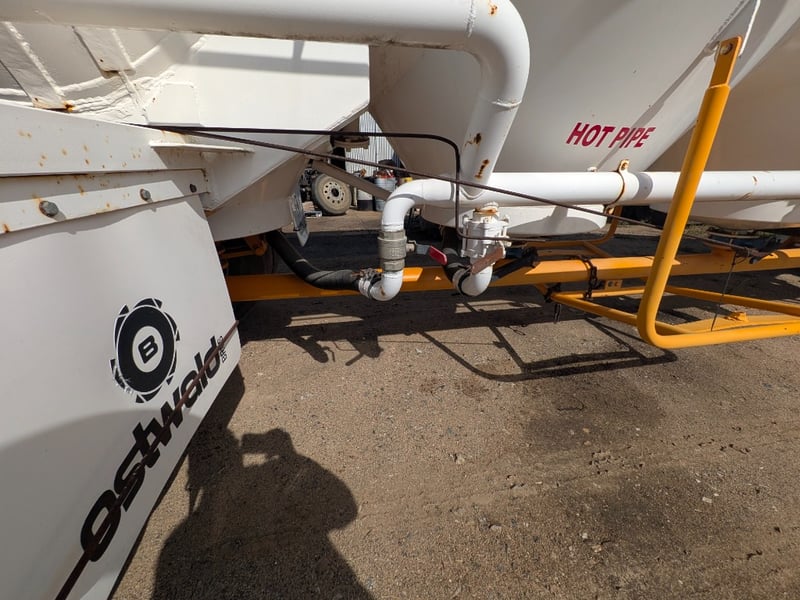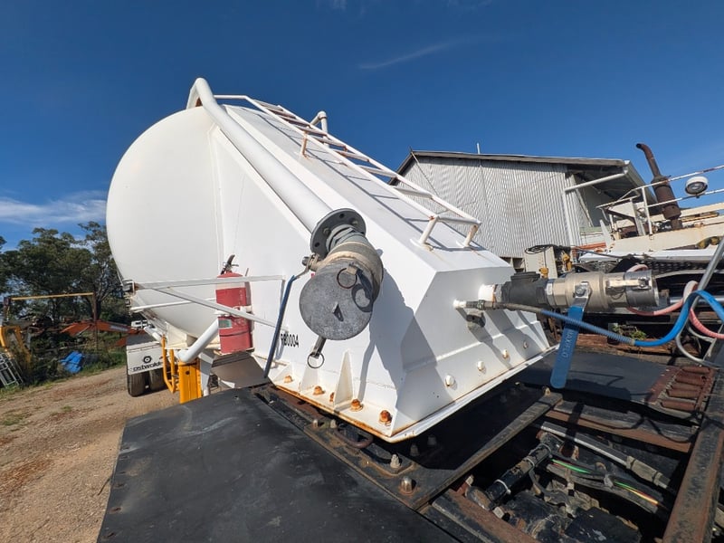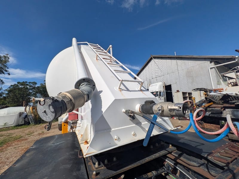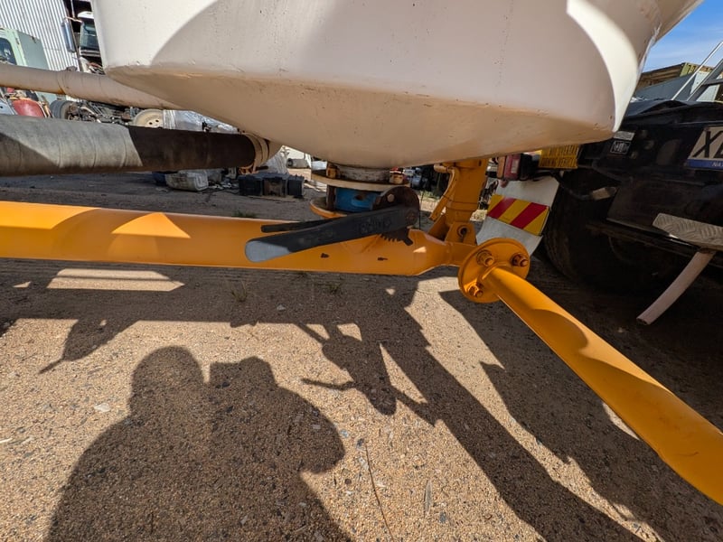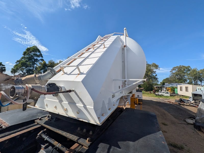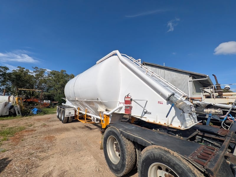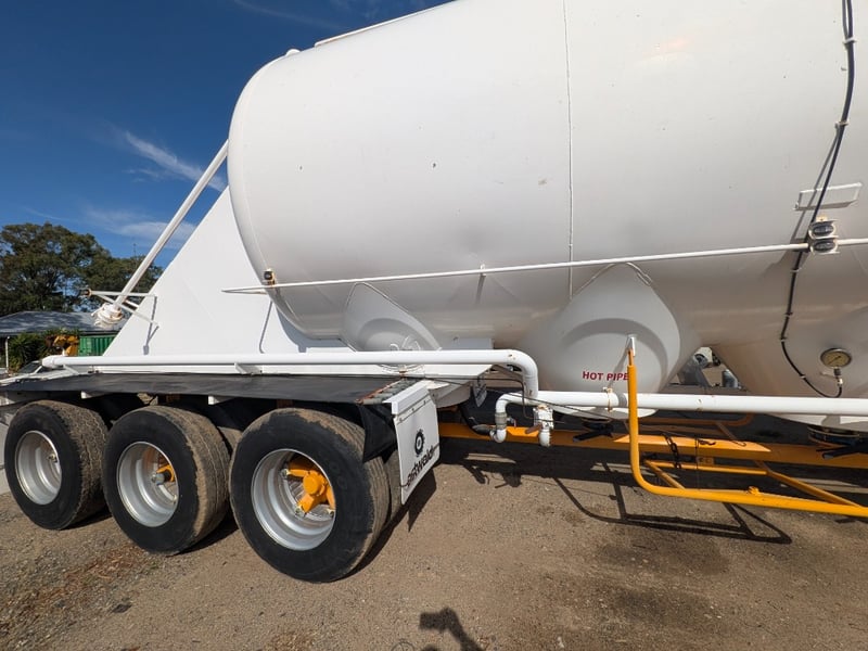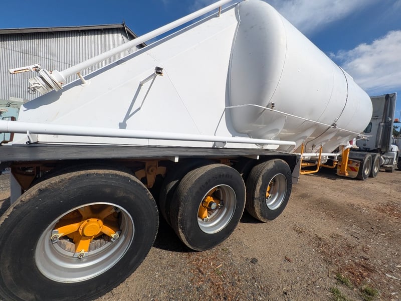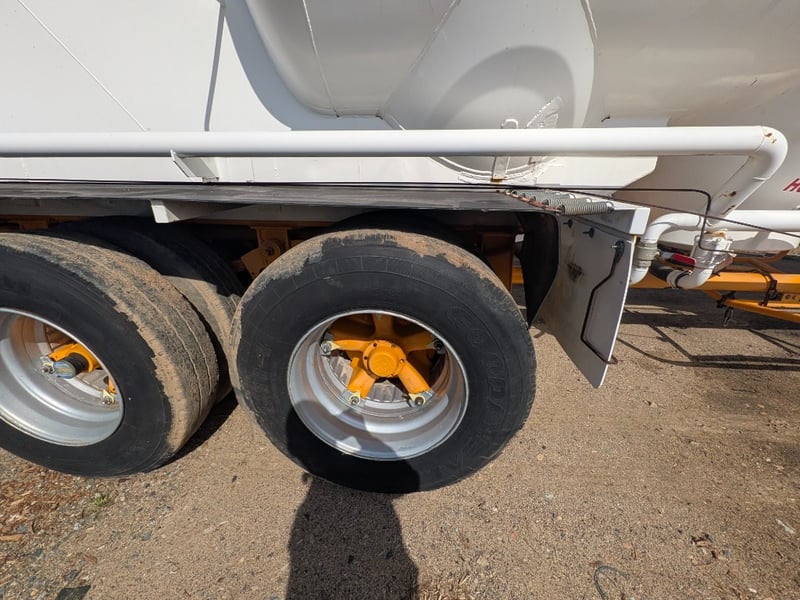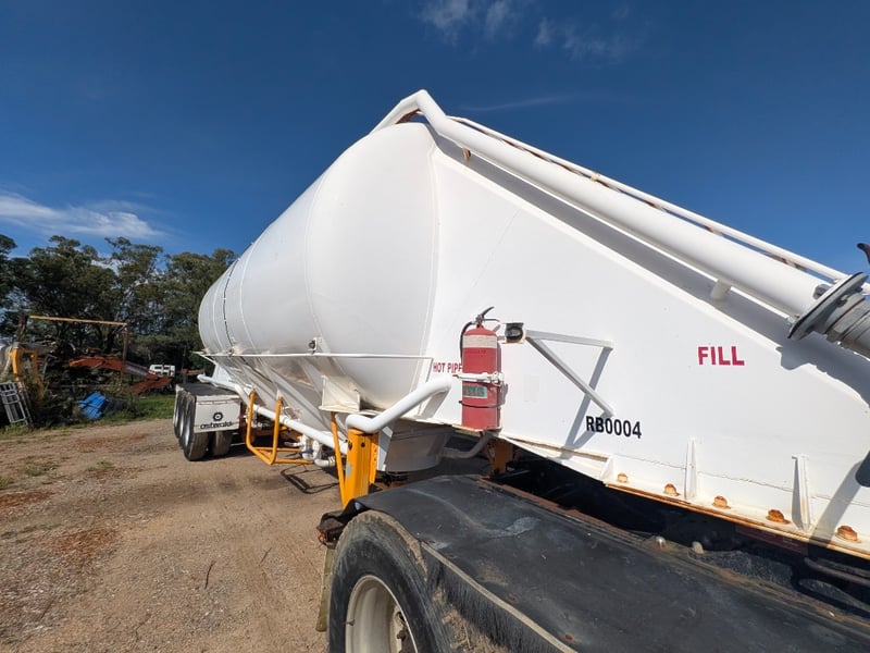 Tri Axle Tanker Trailer Type: Tri Axle Tanker Trailer Configuration: 3 Axle – Airbag Suspension Colour: White Tank / Yellow Chassis Notes/Extras: Fully Refurbished, Repainted, Fitted with new Valves/ Features: Large cylindrical steel tank, Insulated tank design, Top ladder access, Rear lights & reflectors fitted, Ostwald branded mudflaps