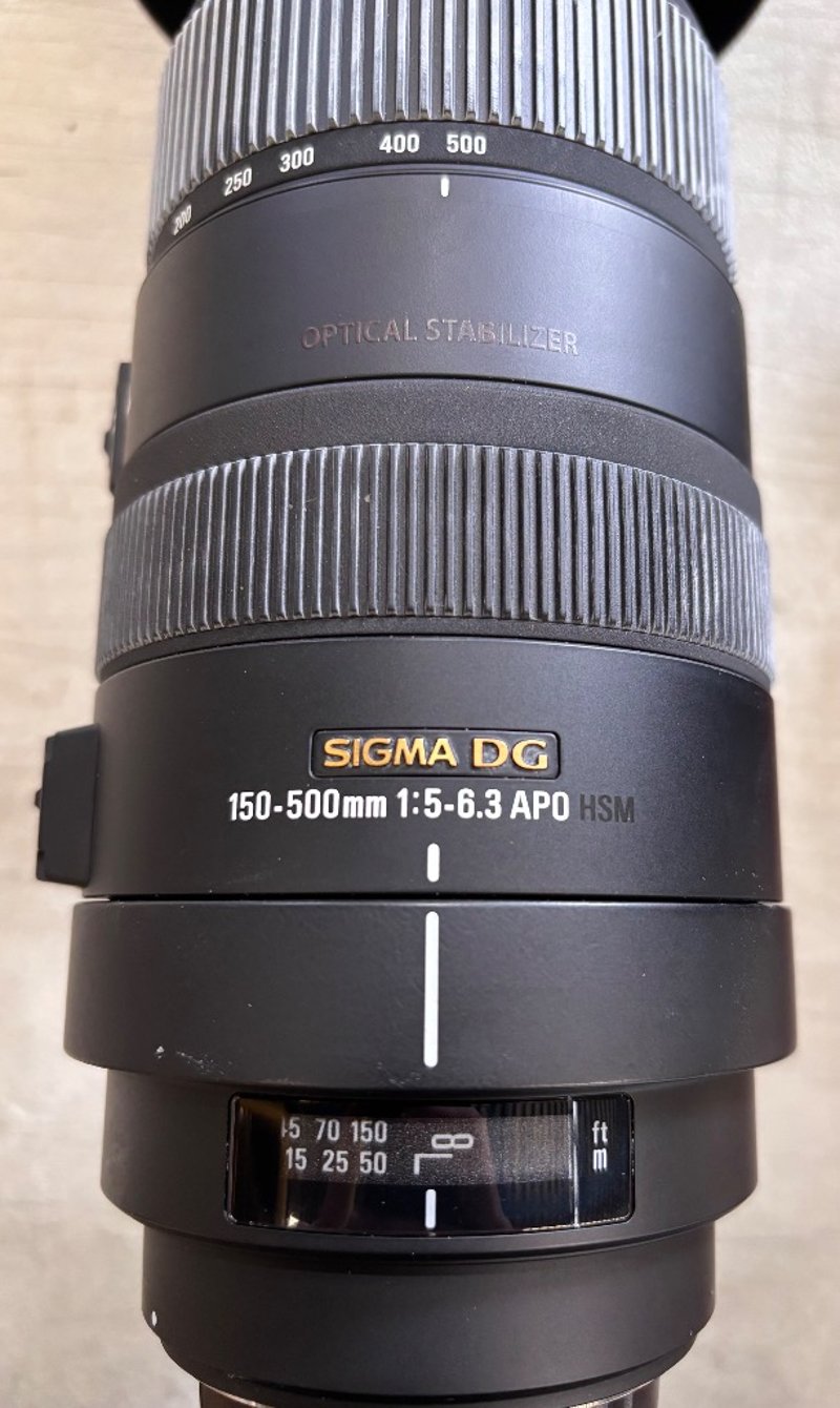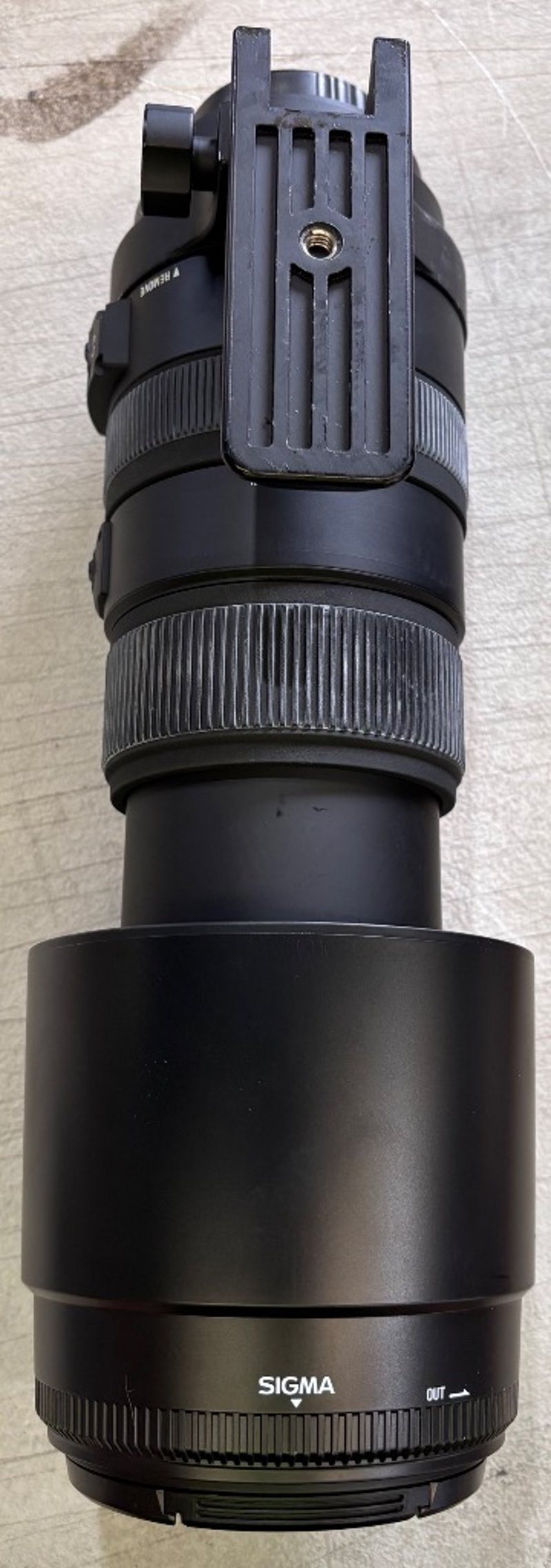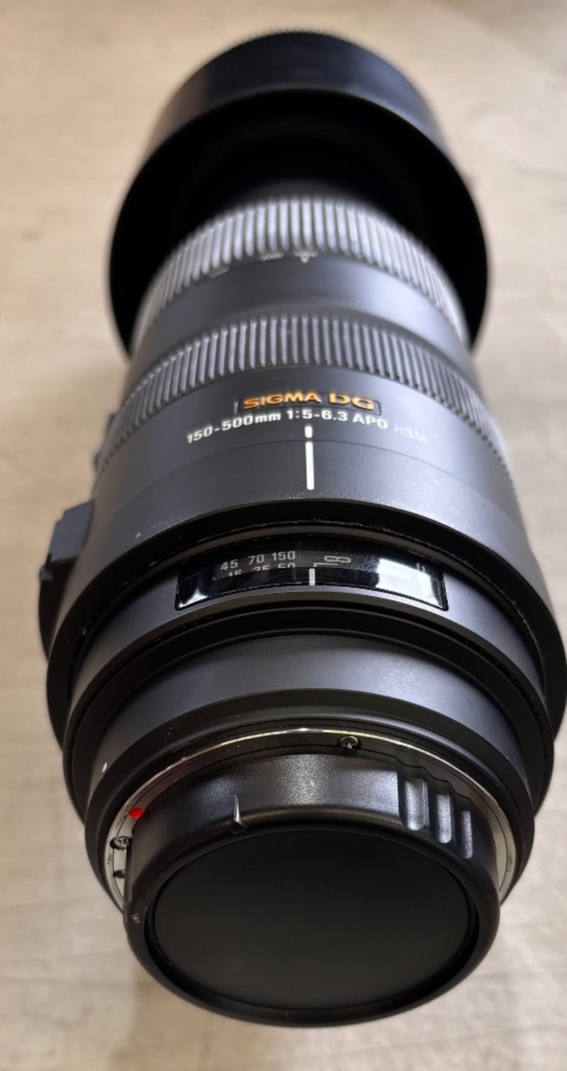 Sigma 150-500mm f/5-6.3 APO DG OS HSM telephoto zoom lens with carry case Note; working condition unknown, minor scratches and scuffs (refer to images)