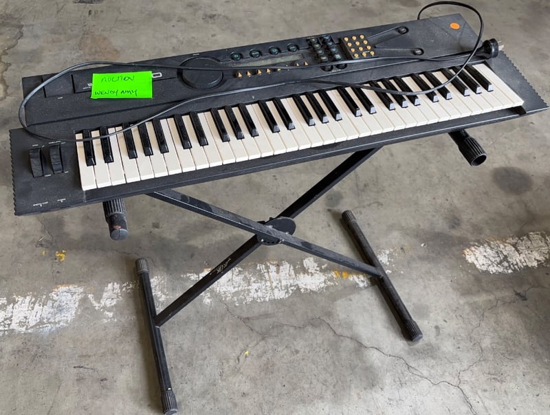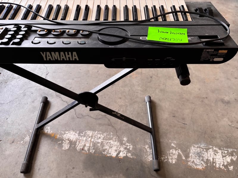 Yamaha digital synthesiser YS200 with stand Note; items may be damaged (refer to images), working condition unknown