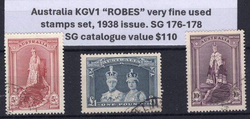 Australia KGV1 "ROBES" stamps set, very fine used, 1938 issue, SG 176-178