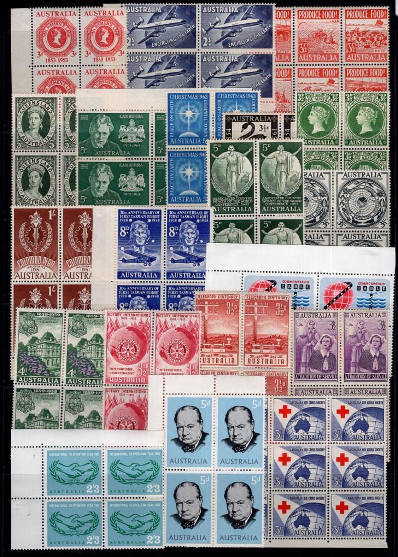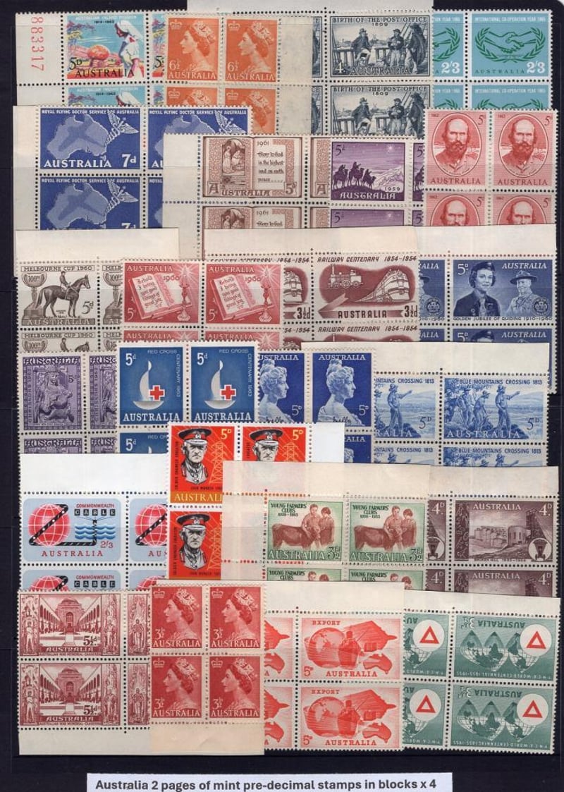 Australia 2 pages of mint pre-decimal stamps in blocks x 4